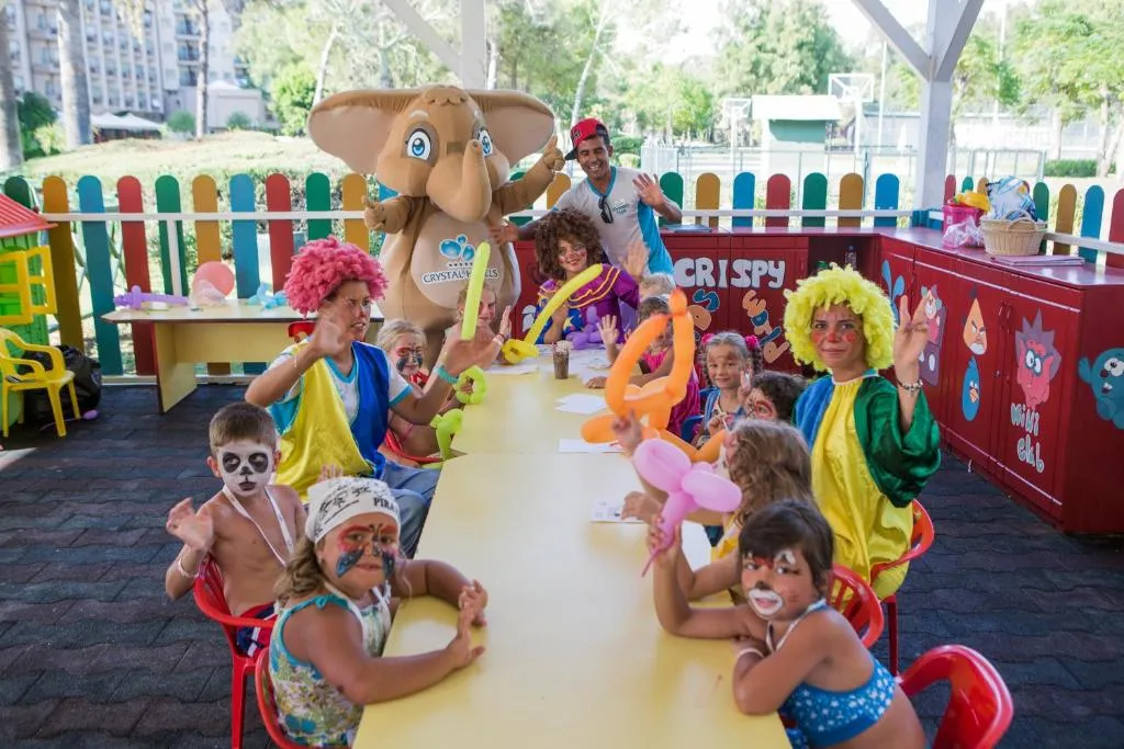 Breakfast buffet; Hot breakfast; Late riser breakfast; Buffet lunch; Buffet dinner; À la carte dinner; All inclusive; Gluten-free meals ; Vegetarian meal; Snacks; Vegan meal; Halal meal Things to keep in mind:Deposit on arrival; Identification card at arrival Sports:Aqua fit; Banana boating (Extra Fee); Waterskiing (Extra Fee); Jet ski (Extra Fee); Motor board ride (Extra Fee); Windsurfing (Extra Fee); Canoeing (Extra Fee); Pedal boating (Extra Fee); Table tennis; Aerobics; Fitness; Cycling / mountain biking (Extra Fee); Basketball; Beach volleyball; Billiards (Extra Fee); Bocce; Bowling alley (Extra Fee); Tennis; Darts; Golf practice facility Healthy & Safety (COVID):Crystal - Hygienic Concept