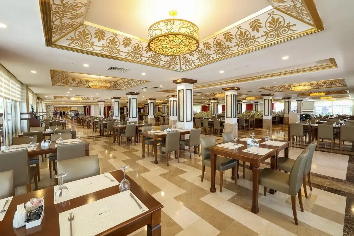 Descriere generală La doar câțiva pași de o plajă privată cu nisip/pietriș se găsește hotelul Crystal Tat Beach. Pe plajă sunt disponibile gratuit șezlonguri și umbrele de soare. Orașul Antalya este la aprox. 45 km. Locul de cazare are la dispoziție mașini de închiriat. Aeroportul (AYT) se află la aprox. 33 km. Un alt aeroport (GZP) este la cca. 146 km. O navetă circulă regular spre Titanic Golf (graduit). Facilități Hotelul de wellness dispune de 5 etaje și peste 503 camere repartizate între o clădire principală și de 2 clădiri secundare. Hotelul are recepție deschisă 24h (check-in de la 14:00, check out până la 12:00), lobby, aer condiționat, magazin și parcare (gratuită). Accesul la internet WiFi este disponibil gratuit pentru oaspeții hotelului. Pentru evenimente de afaceri, hotelul oferă o zonă de conferințe. Serviciul de menaj este gratuit. Room service, spălătorie, călcat și serviciul medical sunt disponibile la un cost suplimentar. Piscină Zona exterioară a hotelului include o piscină precum și o piscină pentru copii și un tobogan de apă. La piscină sunt disponibile gratuit șezlonguri și umbrele de soare. Catering Mic dejun (între orele 07:00 - 10:00) bufet suedez. All Inclusive: micul dejun, prânzul și cina. Micul dejun, prânzul și cina pot fi servite numai în anumite restaurante. Apă. Băutură de bun venit, mic dejun târziu (între orele 10:00 - 11:00), băuturi răcoritoare (10:00 - 00:00), cafea și ceai (10:00 - 00:00), prăjituri și produse de patiserie (10:00 - 18:00), aperitive (12:00 - 16:00), bere (10:00 - 00:00), vin (10:00 - 00:00), băuturi alcoolice naționale (10:00 - 00:00), anumite băuturi alcoolice importate (între orele 10:00 - 00:00), gustări la miezul nopții (23:00 - 00:30), internet gratuit și utilizarea gratuită a seifului (în baza unei garanții). Sport/Leisure Oferte pentru sport și divertisment: Darts (gratuit), aerobic, biliard (contra cost), volei pe plajă, tenis (gratuit), tenis de masă (gratuit), fitness și baschet. La cca. 800 m de hotel este un teren de golf. Oferte de wellness: Saună, jacuzzi, baie turcească și hamam gratuite. Zonă de spa și masaje contra cost. Loc de joacă pentru copii. Îngrijirea copiilor: mini club pentru copii (de la 4 - 12 ani) și babysitting (contra cost). Sală de jocuri. Informații suplimentare Pentru anumite facilități sau activități se pot aplica taxe suplimentare. Unele servicii depind de anotimp și de condițiile climatice locale. Limbi de serviciu: engleză, germană și turcă. Carduri de credit: Visa și Euro/MasterCard. Familienzimmer (Landschaftsblick): Cameră cu pat pentru bebeluși (gratuit), parchet laminat, încălzire controlată centralizat, minibar (posibil contra cost), acces la internet (gratuit), seif (gratuit) și TV cu ecran plat prin satelit precum și aer condiționat controlat central. Baie cu duș. Standard Zimmer (Gartenblick): Dotate cu pat pentru bebeluși (gratuit), parchet laminat, încălzire controlată centralizat, minibar (posibil contra cost), acces la internet (gratuit), seif (gratuit) și TV cu ecran plat prin satelit precum și aer condiționat controlat central. Baie cu duș. Standard Zimmer (Seitlicher Meerblick): Cameră cu pat pentru bebeluși (gratuit), parchet laminat, încălzire controlată centralizat, minibar (posibil contra cost), acces la internet (gratuit), seif (gratuit) și TV cu ecran plat prin satelit precum și aer condiționat controlat central. Baie cu duș. Standard Zimmer (Meerblick): Dotate cu pat pentru bebeluși (gratuit), parchet laminat, încălzire controlată centralizat, minibar (posibil contra cost), acces la internet (gratuit), seif (gratuit) și TV cu ecran plat prin satelit precum și aer condiționat controlat central. Baie cu duș. Doppel Standard Zimmer: Dotate cu pat pentru bebeluși (gratuit), parchet laminat, încălzire controlată centralizat, minibar (posibil contra cost), balcon, acces la internet (gratuit), seif (gratuit) și TV cu ecran plat prin satelit precum și aer condiționat controlat central. Baie cu duș. Dimensiune: 23 m². Doppel Standard Zimmer (Economy): Dotate cu pat pentru bebeluși (gratuit), parchet laminat, încălzire controlată centralizat, minibar (posibil contra cost), acces la internet (gratuit), seif (gratuit) și TV cu ecran plat prin satelit precum și aer condiționat controlat central. Baie cu duș. Doppel Standard Zimmer (Seitlicher Meerblick): Cameră cu pat pentru bebeluși (gratuit), parchet laminat, încălzire controlată centralizat, minibar (posibil contra cost), balcon, acces la internet (gratuit), seif (gratuit) și TV cu ecran plat prin satelit precum și aer condiționat controlat central. Baie cu duș. Einzelbelegung Standard Zimmer: Dotate cu pat pentru bebeluși (gratuit), parchet laminat, încălzire controlată centralizat, minibar (posibil contra cost), balcon, acces la internet (gratuit), seif (gratuit) și TV cu ecran plat prin satelit precum și aer condiționat controlat central. Baie cu duș. Einzelbelegung Standard Zimmer (Economy): Cameră cu pat pentru bebeluși (gratuit), parchet laminat, încălzire controlată centralizat, minibar (posibil contra cost), acces la internet (gratuit), seif (gratuit) și TV cu ecran plat prin satelit precum și aer condiționat controlat central. Baie cu duș. Einzelbelegung Standard Zimmer (Seitlicher Meerblick): Cameră cu pat pentru bebeluși (gratuit), parchet laminat, încălzire controlată centralizat, minibar (posibil contra cost), balcon, acces la internet (gratuit), seif (gratuit) și TV cu ecran plat prin satelit precum și aer condiționat controlat central. Baie cu duș. Einzelbelegung Standard Zimmer (Meerblick): Dotate cu pat pentru bebeluși (gratuit), parchet laminat, încălzire controlată centralizat, minibar (posibil contra cost), acces la internet (gratuit), seif (gratuit) și TV cu ecran plat prin satelit precum și aer condiționat controlat ce