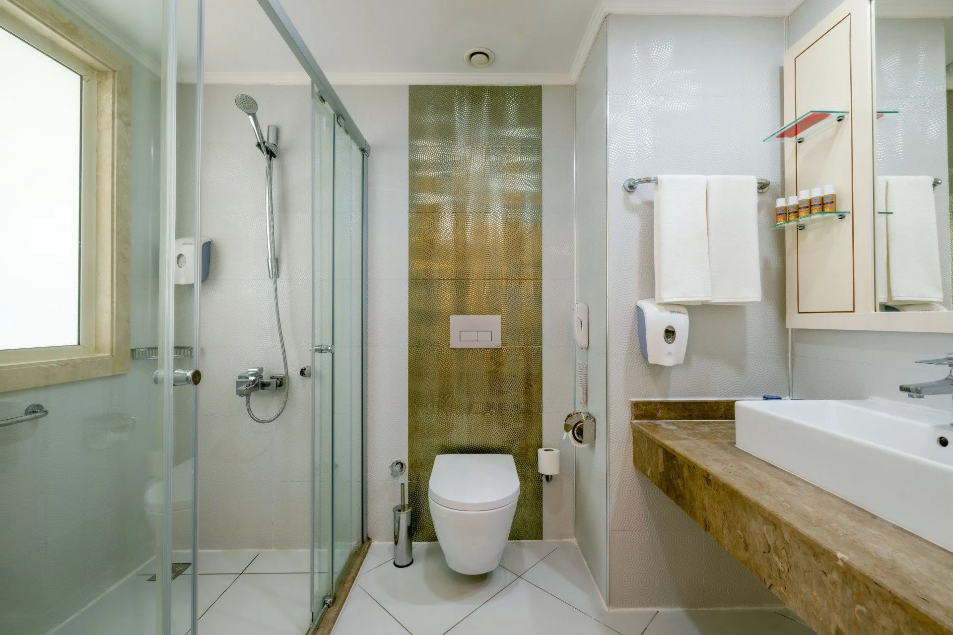 In the vicinity of the hotel`s own sandy/pebble beach is located the 5 star accommodation Crystal Waterworld Aqua Collection. The nearest bars and restaurants can be found at a distance of around 7 km. The old town is around 55 km away. The nearest shops you can reach within around 1 km, a supermarket is around 500 m away. The beach is patrolled by a lifeguard and awarded a blue flag. Here, there are beach towels available. Cold drinks are served at the bar on the beach. The seasonally air-conditioned halal hotel is equipped with a 24h reception (check-in is possible around the clock), a lobby bar, Wi-Fi, internet access, a lift, a supermarket and other shops, a boutique, a hairdresser, showers and changing rooms, a first aid kit, parking spaces (limited) as well as a TV lounge with satellite TV. In the outdoor area of the property you will find a garden as well as a seasonally heated and supervised pool that is open seasonally November), where sun loungers, sun umbrellas and pool towels are available for free. For children there are also 2 separate and integrated children's pools with 13 water slides (type twister/open slide) as well as 5 children`s slides. Furthermore, you can relax outdoors on a roof terrace. Inside the hotel you can use a heated indoor pool. In addition, the hotel Crystal Waterworld Aqua Collection is video-monitored 24h a day. For your entertainment, the hotel offers a library/reading room, a cinema and a disco. You can spend social time at the beach club. For the young hotel guests there is a playground. For very young guests, kid`s chairs and highchairs can also be provided. For the smallest children prams can be rented in the hotel. You can store your luggage in the hotel's storage room. There is also a laundry service available at an additional cost to customers. Ironing equipment can be borrowed at the hotel. For your comfort the hotel page will ensure you are looked after. If necessary, you can contact the medical centre at any time (for a fee). Guests at the accommodation can get a wake-up call from the hotel personnel. The energy supply is 220 Volts. For conventions and other business meetings, the hotel offers a conference area with a total of 800 seats, lectern, tables, a video projector, printer, scanner, overhead projector as well as internet access. A photographer can also be ordered from the hotel for business events. For guests on their honeymoon, the hotel has special offers such as a romantically-decorated room, rooms with a particularly romantic location and view, champagne, sparkling wine, a present, a basket of fruit or flowers in the room. In your hotel, a lot of focus is placed on sustainability. This includes the hotel`s own recycling bins, the provision of soap and shampoo dispensers, a central room air-conditioning and environmentally-friendly cleaning. That is why the hotel Crystal Waterworld Aqua Collection was also awarded a sustainability certificate. Euro/Master Card and Visa are accepted as means of payment. Due to its barrier-free facilities , such as an automatic hotel door, a hotel door that can be opened manually and separate, barrier-free entrances, the hotel is also suitable for wheelchair users. Catering As catering services the hotel offers all-inclusive, all-inclusive light and breakfast only. Breakfast is offered from the buffet or as brunch. Enjoy your lunch from the buffet with starters, salads and desserts. Dinner is also served as a buffet or à la carte with desserts (extras on request). All Inclusive Light includes coffee & tea, cake & pastries, beer as well as local and international alcoholic beverages. As part of the all-inclusive service, water (24h), softdrinks (24h), coffee and tea (24h), snacks (24h), beer (24h) as well as international alcoholic beverages (24h, limited) are available at no extra charge. For the meals, there are a buffet restaurant (Italian, calorie-reduced and gluten-free dishes) and several bars as well as the pool bar. The drinks menu of the hotel includes water, soft drinks, coffee and tea, beer and wine. Alcoholic beverages are not served in the hotel. Appropriate clothing is required for lunch and dinner. Distances
