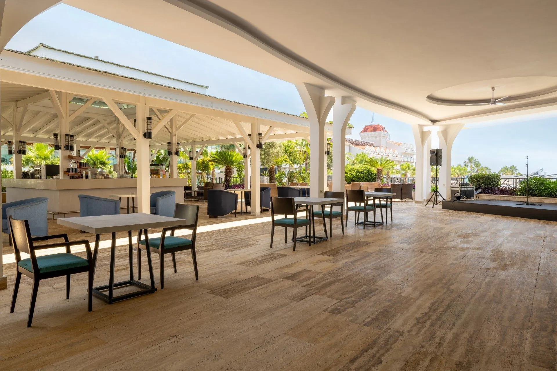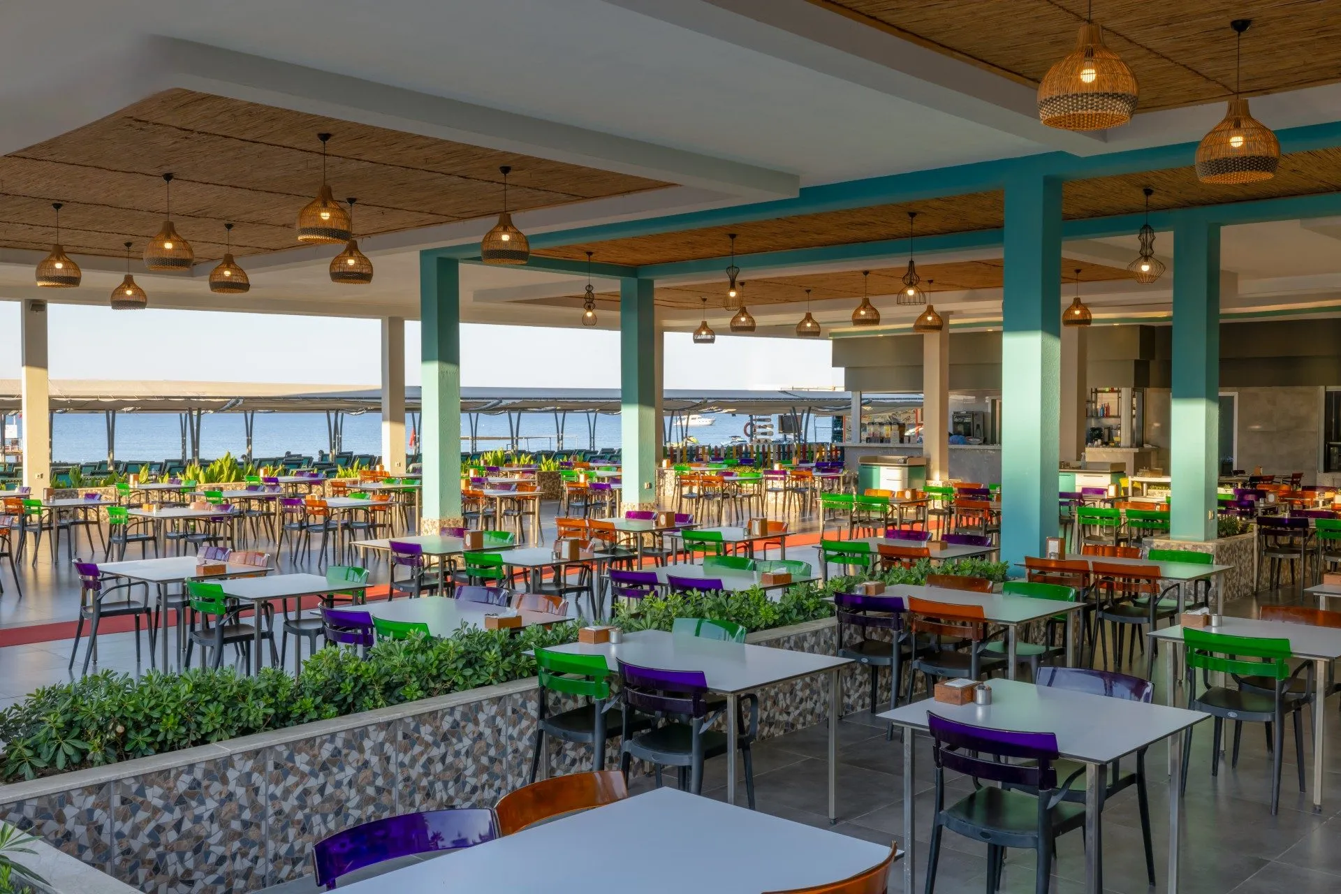 Sports & Leisure To keep your fitness up on holiday, there is a gym for guests to use. A minigolf course offers fun for the family. For an fee, you can take advantage of various water sports, including banana and speedboats, catamaran, wake boarding, jet skiing and water aerobics. If you want to stay on the ball during your holidays, you`ll find a basketball court. During your holiday you can also take part in aerobics and yoga courses. There is also the option to play bowling or badminton. Those who want to practice archery will find facilities for this at the hotel. With beach volleyball, darts and table tennis various other sports offer a lot of variety on holiday. In addition to a tennis court (hard court, at extra cost) with floodlighting there is also a tennis rental. Also volleyball as well as boccia are offered as further leisure activities. A sauna awaits you for relaxation. The hotel also offers massages (extra fee), beauty treatments (extra fee) and thalassotherapies. Let yourself be pampered in the Hamam. Spend some healthy and relaxing hours with hot stone therapy. Infants can be looked after in the hotel`s own baby club. For older children the care takes place in the children`s club. The mini disco also offers age-appropriate entertainment for young hotel guests. Furthermore there is a youth club. In terms of adult entertainment, evening shows and live music are presented and there is a games room available to use. Additional information The 4-storey hotel, newly built in 2013 and last renovated in 2017, has a total of 1023 rooms. The hotel staff speak English, German, French, Russian, Arabic and Turkish.