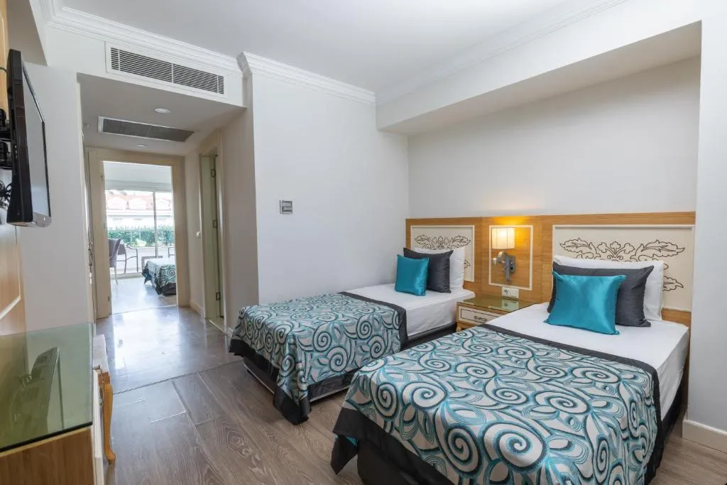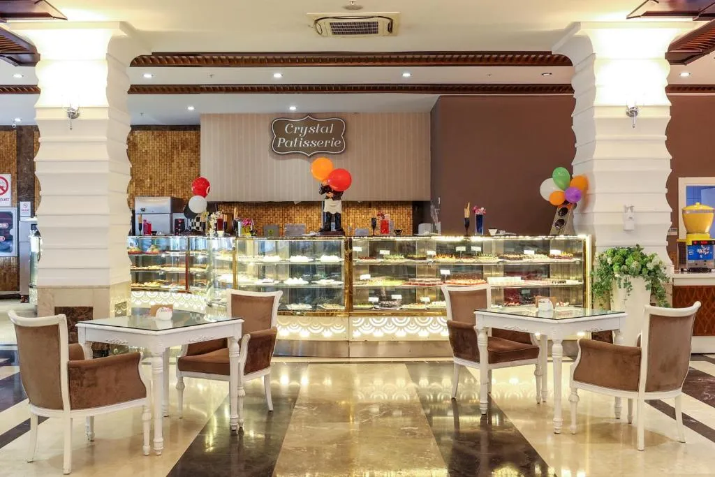 Descriere generala: Hotel eco-friendlyAcces internet Wi-Fi pe întreg domeniul hoteluluiAqua ParkDiversitate culinarăRecomandat pentru un sejur activ Principalele puncte de atracție: Hotel eco-friendlyAcces internet Wi-Fi pe întreg domeniul hoteluluiAqua ParkDiversitate culinarăRecomandat pentru un sejur activ Descriere hotel: Resortul a fost inaugurat în anul 2013 și se întinde pe o suprafață de 52.000 mp. Anual au loc renovări parțiale. Facilități si dotari camere: Hotelul este compus din nouă clădiri a câte cinci etaje, patru clădiri a câte trei etaje și patru clădiri anexe a câte cinci etaje. Cele 1.023 camere sunt distribuite astfel:579 camere Standard – cca. 27 mp, pat dublu sau două paturi twin și un pat twin sau canapea extensibilă;4 camere VIP Honeymoon – cca. 23 mp, pat dublu, jacuzzi pe balcon;139 camere Familiale – cca. 33 mp, două camere cu pat dublu și două paturi twin;5 camere Familiale cu pat supra-etajat – cca. 33 mp, două camere cu pat dublu, pat supra-etajat și un pat twin;134 camere Familiale în clădirea anexă – cca. 44 mp, două camere cu pat dublu și două paturi twin;8 camere Attic Corner – cca. 38 mp, două camere cu pat dublu și două paturi twin; 4 Suite – cca. 50 mp, pat dublu, living, jacuzzi pe terasă.Dotări camere: baie cu cadă / duș, uscător de păr, aer condiționat, seif, mini-bar, TV, telefon, acces internet Wi-Fi, camere fumători / nefumători, balcon / terasă. Sport și relaxare: Centru SPA: salon de înfrumusețare, tratamente faciale și corporale, masaje, coafor, baie turcească, saună, baie cu aburi, jacuzzi, sală de fitness, polo pe apă, aqua-gym, cinema, jocuri video, biliard, bowling, darts, mini-golf, teren de tenis, teren de basket, teren de golf, volei pe plajă, program de animație, muzică live, sporturi nautice: jet ski, banana, parasailing, hidrobicicletă, surfing. Facilități pentru copii: Mini Club (pentru copiii cu vârsta cuprinsă între 4-12 ani), spațiu de joacă, Aqua Park, piscină pentru copii și bebeluși, meniu în restaurante. Facilități gratuite: Acces internet Wi-Fi pe întreg domeniul hotelului, baie turcească, saună, baie cu aburi, jacuzzi, sală de fitness, polo pe apă, aqua-gym, cinema, darts, mini-golf, teren de tenis, teren de basket, volei pe plajă, program de animație, muzică live. Facilități contra cost: Centru SPA: salon de înfrumusețare, tratamente faciale și corporale, masaje, coafor; jocuri video, biliard, bowling, teren de golf, săli de conferință, nocturnă și echipament teren de tenis, servicii medicale, servicii de spălătorie, magazine, sporturi nautice: jet ski, banana, parasailing, hidrobicicletă, surfing. Regim de masă: Ultimate All Inclusive:Mic dejun, prânz și cină tip bufetCină în restaurantele a la carte o dată pe sejur cu rezervare în prealabil – excepție restaurantele asiatic, pescăresc și steak houseBăuturi alcoolice și non-alcoolice locale în intervalul 10:00 – 24:00Mini-bar alimentat cu băuturi răcoritoareAcces internet Wi-Fi pe întreg domeniul hotelului, baie turcească, saună, baie cu aburi, jacuzzi, sală de fitness, polo pe apă, aqua-gym, cinema, darts, mini-golf, teren de tenis, teren de basket, volei pe plajă, program de animație, muzică live Bine de stiut: Hotelul dispune de facilități pentru persoanele cu dizabilități. Locatia: Hotelul este amplasat la o distanță de 40 km de Aeroportul din Antalya și la 50 km de centrul orașului. Soare si mare: Plajă proprie cu nisip, lungime: 100 metri, ponton; Clădirea principală: Aqua Park cu 7 tobogane – 800 mp, piscină pentru copii – 350 mp, piscină pentru bebeluși – 50 mp, piscină Anfi – 1.800 mp, piscină interioară – 165 mp, piscină interioară pentru copii – 20 mp; Clădirea anexă: piscină aqua cu 4 tobogane – 150 mp, piscină exterioară – 250 mp, piscină pentru copii – 60 mp, piscină pentru bebeluși – 40 mp;Șezlonguri, saltele și umbrele gratuite atât la plajă, cât și la piscină. Prosoape – contra cost. Restaurante si baruri: Restaurante principale „Crystal” și „Olimpos” tip bufet, Snack Restaurant „Caretta”, Snack Restaurant „Aqua”, Gozleme – patiserie cu produse tradiționale, Patiserie, Gelaterie, Coffee Street;Restaurante a la carte cu specific: „Anatolia” turcesc, „Al Dente” italian, „Latino”, „Dragon” asiatic, „Steak House”, „Sea Food”, „Caretta Sahil” turcesc;Baruri: Lobby Bar, Teras Cafe, Arena Bar, Pool Bar, „Caretta” Beach Bar, Irish Pub Bar, Sunset Bar, „Atlantis” Bar, „Prestige” Bar, H2O Disco Bar.