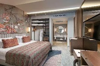 Sports & Leisure To keep your fitness up on holiday, there is a gym for guests to use. Special offers are available at the hotel for all golf enthusiasts: Two public golf courses (fees apply) with covered driving range are located close to the hotel and offer optimal conditions for all golfing fans, and for your convenience also provide facilities such as a shuttle and caddy service, golf carts and trolleys. The necessary equipment you can buy at a golf shop. After a round of golf you can enjoy a cool drink in the clubhouse. A minigolf course offers fun for the family. For an fee, you can take advantage of various water sports, including bananaboats, river rafting, wake boarding, jet skiing and water skiing. In addition, there is an all-purpose sports field in the surroundings of the hotel. If you don`t want to miss out on training with a ball during your holidays, you`ll find a grass football pitch. During your holiday you can also take part in aerobics and yoga courses. There is also the option to play bowling or badminton. With beach volleyball, darts and table tennis various other sports offer a lot of variety on holiday. In addition to a tennis court (hard court) with floodlighting there is also a tennis school and a tennis rental. For cyclists there is a bicycle rental (extra fee). Cycling tours are also organized by the hotel. Also volleyball as well as boccia are offered as further leisure activities. Furthermore, various water sports such as diving are offered in the area. A sauna and a wellness shower await you in the spa. The hotel also offers massages (extra fee) and beauty treatments (extra fee). Let yourself be pampered in the Hamam. Spend some healthy and relaxing hours with fango, heat therapy, hot stone therapy, hydrotherapy as well as brine baths. Infants can be looked after in the hotel`s own baby club. For older children the care takes place in the children`s club. There is a babysitting service (extra fee) in the hotel, so that adults can also find some time to relax. Junior hotel guests can also let off steam in the mini disco. Furthermore there is a youth club. In terms of adult entertainment, evening shows and live music are presented and there is a games room available to use. Some of the sports are already included in the price. Additional information The 8-storey accommodation, newly built in 2022, has a total of 544 rooms. The hotel staff speak English, German, Russian and Turkish.