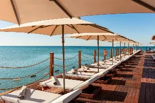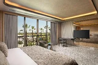The aparthotel Cullinan Belek is located approximately 100 m from the private sandy beach. The city centre is around 3 km away. There is a 24h shuttle service between the hotel and the airport (for a fee) 24h a day. Nearby there is a waterpark and a golf course which offer entertainment in high season. The beach is patrolled by a lifeguard and awarded a blue flag. On the beach there is also a clubhouse. Here, there are sun loungers, cushions, sun umbrellas and beach towels available. Cold drinks are served at the bar on the beach. There is also a promenade here where you can go for a stroll. The seasonally air-conditioned, GPS-verified halal hotel has a 24h reception (check-in is possible around the clock), a lobby bar, Wi-Fi, internet access, 8 lifts, a supermarket and other shops, a boutique, cash machine, a hairdresser, a jacuzzi, a first aid kit, parking spaces (limited) as well as a TV lounge with satellite TV. In the outdoor area of the property you will find a garden as well as a seasonally heated and supervised pool that is open seasonally (open all year), where sun loungers, sun umbrellas and pool towels are available for free. For children there is also a children's pool with 13 water slides (type twister/open slide/tunnel slide). Furthermore, outside you can find a roof terrace. Inside the hotel you can use a heated indoor pool. You can store your valuables in the safe, and your luggage in the hotel`s storage room. In addition, the hotel Cullinan Belek is video-monitored 24h a day. For your entertainment, the hotel offers a disco. You can spend social time at the beach club. For the young hotel guests there is a playground. For very young guests, kid`s chairs, highchairs and cots can also be provided. For the smallest children prams can be rented in the hotel. There is also a laundry service available at an additional cost to customers as well as an ironing service. Ironing equipment can also be borrowed at the hotel. For your comfort, in addition to the concierge service the hotel page will ensure you are looked after. If necessary, you can contact the medical centre at any time (for a fee). Guests at the accommodation can get a wake-up call from the hotel personnel. The energy supply is 220, 230 and 240 Volts. For conventions and other business meetings, the hotel offers EXTRA_FEE (auditorium-style) conference rooms with a reception, a video projector, internet access as well as a catering service. A photographer can also be ordered from the hotel for business events. If you want to explore the holiday region, you can use the car rental service close to the hotel (extra fee). At the hotel reception, tickets are offered for excursions in the area. For guests on their honeymoon, the hotel has special offers such as a romantically-decorated room, rooms with a particularly romantic location and view, romantic dishes in the restaurant, champagne, sparkling wine, a basket of fruit or flowers in the room. In your hotel, a lot of focus is placed on sustainability. This includes waste segregation in the rooms, the hotel`s own recycling bins, the provision of soap and shampoo dispensers, organic food and ecological meals and environmentally-friendly cleaning. That is why the hotel Cullinan Belek was also awarded a sustainability certificate. American Express, Euro/Master Card and Visa are accepted as means of payment. Due to its barrier-free facilities , such as a sliding door in the entrance area, an automatic hotel door, a hotel door that can be opened manually, barrier-free entrances, wheelchair accessible rooms and wheelchair-accessible bathrooms, the hotel is also suitable for wheelchair users. Catering As catering services the hotel offers all-inclusive, all-inclusive light and full board. Breakfast is offered American, continental, from the buffet or à la carte. Lunch and dinner are also served as a set meal, à la carte or from the buffet with starters, salads and desserts. All Inclusive Light includes coffee & tea, cake & pastries, beer, wine as well as local and international alcoholic beverages. When booking all-inclusive, one welcome drink and - for an extra fee - one meal in the à la carte restaurant are included. As part of the all-inclusive service, water (24h), softdrinks (24h), coffee and tea (24h), snacks (24h), beer (24h), wine (24h) as well as local and international alcoholic beverages (24h, unlimited) are available at no extra charge. For the meals, there are a buffet restaurant with terrace (Italian, Mediterranean, calorie-reduced, gluten-free and vegetarian dishes) and several bars, a 24h snackbar as well as the pool bar. The drinks menu of the hotel includes water, soft drinks, coffee and tea, beer, wine and 24h international alcoholic beverages. Appropriate clothing is required for lunch and dinner. Distances