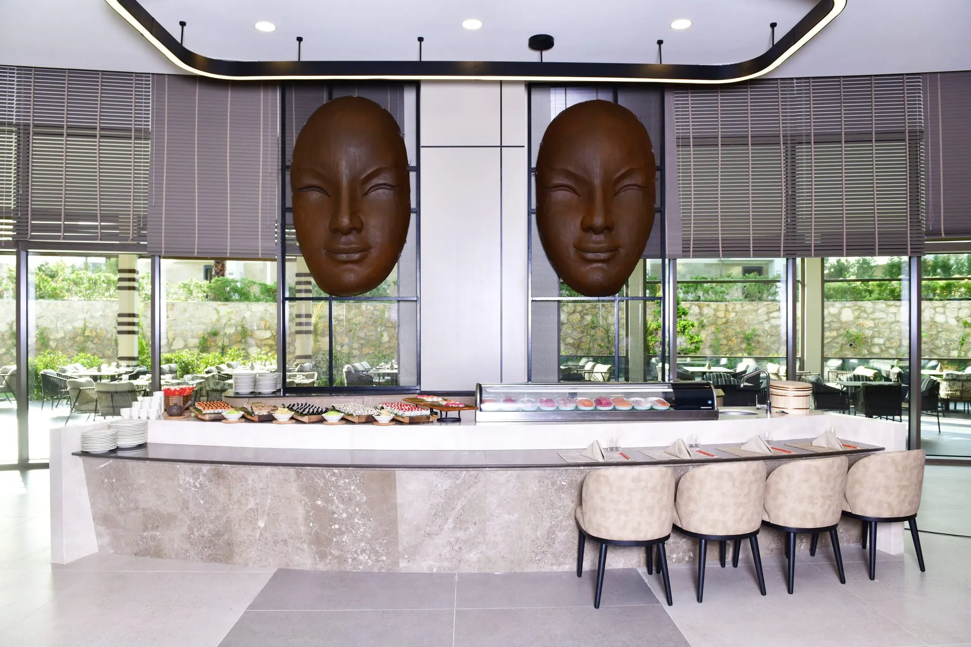 About 100 m from the hotel`s own sandy beach lies the hotel Ethno Hotels Belek. The city centre is around 2 km away. There is a 24h shuttle between the hotel and the airport 24h a day. The beach is patrolled by a lifeguard and awarded a blue flag. On the beach there is also a clubhouse. Here, there are cushions, sun umbrellas and beach towels available. Cold drinks are served at the beach bar. The air-conditioned hotel has a 24h reception (check-in is possible around the clock), a lobby bar, Wi-Fi, internet access, a lift, a supermarket and other shops, a boutique, a hairdresser, a jacuzzi, a first aid kit, parking spaces as well as a TV lounge with satellite TV. In the outdoor area of the property you will find a garden as well as a seasonally heated and supervised pool that is open seasonally (open all year), where sun loungers, sun umbrellas and pool towels are available for free. There are also 2 children`s pools with 15 water slides (type open/tunnel slide). Furthermore, outside you can find a terrace. Inside the hotel you can use a heated indoor pool. You can store your valuables in the safe, and your luggage in the hotel`s storage room. In addition, the hotel Ethno Hotels Belek is video-monitored 24h a day. For your entertainment, the hotel offers a library/reading room, a cinema and a disco. For the young hotel guests there is a playground. For very young guests, kid`s chairs can also be provided. For the smallest children prams can be rented in the hotel. There is also a laundry and ironing service. Ironing equipment can also be borrowed at the hotel. For your comfort the hotel page will ensure you are looked after. If necessary, you can contact the medical centre at any time. The energy supply is 230 Volts. For conventions and other business meetings, the hotel offers a business centre as well as a conference area with tables, printer, overhead projector, internet access as well as a catering service. A photographer can also be ordered from the hotel for business events. If you want to explore the holiday region, you can use the car rental service close to the hotel. For guests on their honeymoon, the hotel has special offers such as a romantically-decorated room, special honeymoon packages, sparkling wine or a basket of fruit in the room. In your hotel, a lot of focus is placed on sustainability. This includes among others the provision of soap and shampoo dispensers. Euro/Master Card is accepted as means of payment. Due to its barrier-free facilities , such as barrier-free entrances, wheelchair accessible rooms and wheelchair-accessible bathrooms, the hotel is also suitable for wheelchair users. Catering As catering services the hotel offers all-inclusive. Breakfast is offered from the buffet or à la carte. Lunch and dinner are also served as a set meal, à la carte or from the buffet with starters, salads and desserts (extras on request and at extra cost). As part of the all-inclusive service, water (24h), softdrinks (24h), coffee and tea (24h), beer (24h), wine (24h) as well as local and international alcoholic beverages (24h) are available at no extra charge. For the meals, there are a buffet restaurant with terrace (Italian, Mediterranean, calorie-reduced, gluten-free and vegetarian dishes) and several bars, the cafeteria, a 24h snackbar as well as the pool bar. The drinks menu of the hotel includes water, soft drinks, coffee and tea, beer, wine and 24h international alcoholic beverages. For dinner, guests are asked to wear appropriate clothing in the restaurant. Distances