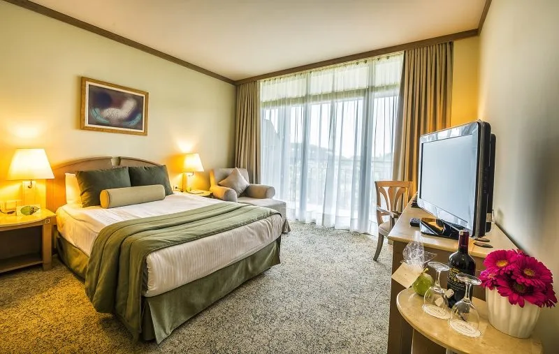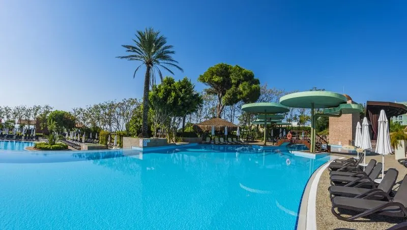 About 600 m from the hotel`s own beach lies the hotel Gloria Verde Resort. The city centre is around 5 km away. A supermarket is around 3 km away. There is a shuttle between the hotel and the airport (for a fee). On the beach are cushions, sun umbrellas and beach towels available. At the beach there is a bar serving refreshing drinks. The hotel has a 24h reception, a lobby bar, Wi-Fi, a lift, a shop, a hairdresser, a first aid kit as well as parking spaces. In the outdoor area of the property you will find a pool that is open seasonally (open from April to October), where sun loungers and sun umbrellas are available for free. There is also a children's pool with 4 water slides. Inside the hotel you can use an indoor pool. For your entertainment, the hotel offers a disco. For very young guests, highchairs can be provided. For the smallest children prams can be rented in the hotel. You can store your luggage in the hotel's storage room. There is also a laundry service available at an additional cost to customers. For your comfort the hotel page will ensure you are looked after. If necessary, you can contact the medical centre (for a fee). If you want to explore the holiday region, you can use the car rental service close to the hotel (extra fee). Catering Breakfast is offered from the buffet. Lunch and dinner are also served from the buffet. For the meals, there are a restaurant (Italian and calorie-reduced dishes) and the pool bar. Distances