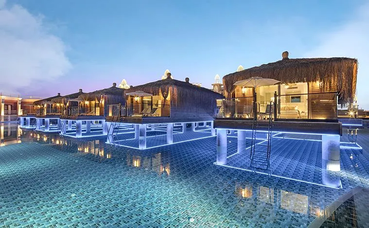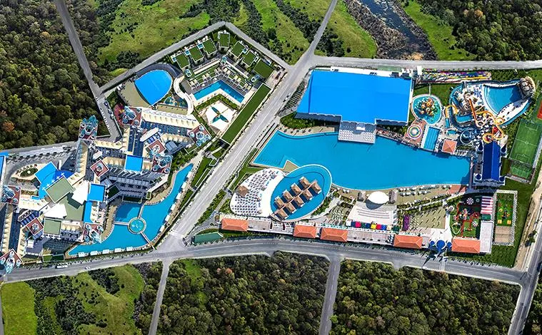 Piscină exterioară – 3.147 mp, piscină pentru copii – 310 mp, Lake House Pool – 480 mp, piscină interioară pentru copii – 24 mp, două piscine interioare – 190 mp / 510 mp, piscina de la vila Granada – 30 mp;