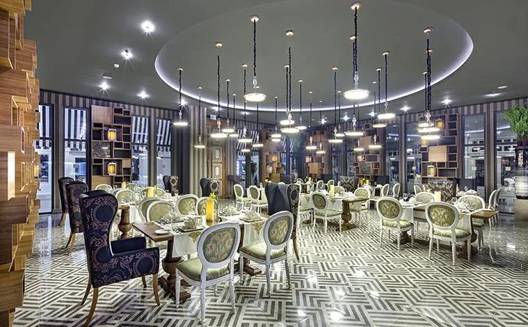 Restaurant principal tip bufet, Restaurante tematice: „Yang” asiatic, „Hunkar” turcesc, „Cielo” italian, Grandy Kids Restaurant, G-Snack Restaurant, Food Park Snack Restaurant, Beach Snack Restaurant, Gozleme – patiserie cu produse tradiționale, „The Pajaro Verde” Patiserie;
