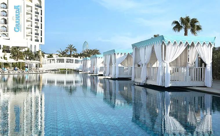 Granada Luxury Belek a fost deschis în anul 2017 și se întinde pe o suprafață de 100.000 mp. Hotel cu personal prietenos, dispune de o gamă largă de facilități de relaxare și activități atât pentru cei mari, cât și pentru cei mici, printre care și un aqua park cu 15 tobogane.
