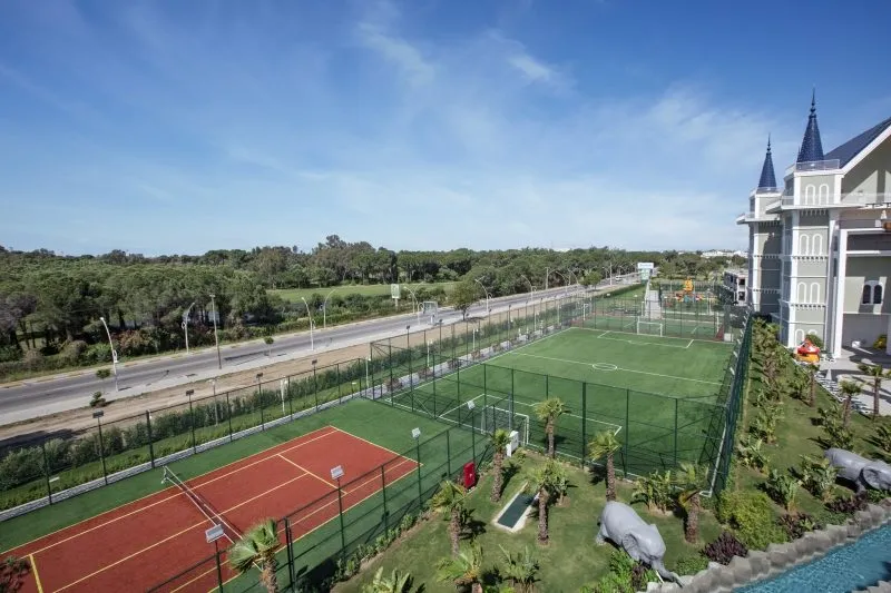 The hotel Granada Luxury Belek is located approximately 2 km from the private beach. The city centre is around 42 km away. A supermarket is around 800 m away. On the beach are cushions, sun umbrellas and beach towels available. Cold drinks are served at the bar on the beach. The hotel is equipped with a 24h reception (check-in is possible around the clock), a lobby bar, Wi-Fi, a shop, a hairdresser as well as a first aid kit. In the outdoor area of the property you will find a pool that is open seasonallyfrom May to , where sun loungers and sun umbrellas are available for free. There is also a children's pool with 14 water slides. Inside the hotel you can use an indoor pool. For your entertainment, the hotel offers a disco. For very young guests, highchairs can be provided. For the smallest children prams can be rented in the hotel. You can store your luggage in the hotel's storage room. There is also a laundry service available at an additional cost to customers. For your comfort the hotel page will ensure you are looked after. If necessary, you can contact the medical centre (for a fee). The energy supply is 220 Volts. If you want to explore the holiday region, you can use the car rental service close to the hotel (extra fee). Catering Breakfast is offered from the buffet. Lunch and dinner are also served from the buffet. When booking all-inclusive, - for an extra fee - one meal in the à la carte restaurant is included. Your physical well-being is catered for by a restaurant (calorie-reduced dishes) and the pool bar. Appropriate clothing is required for lunch and dinner. Distances
