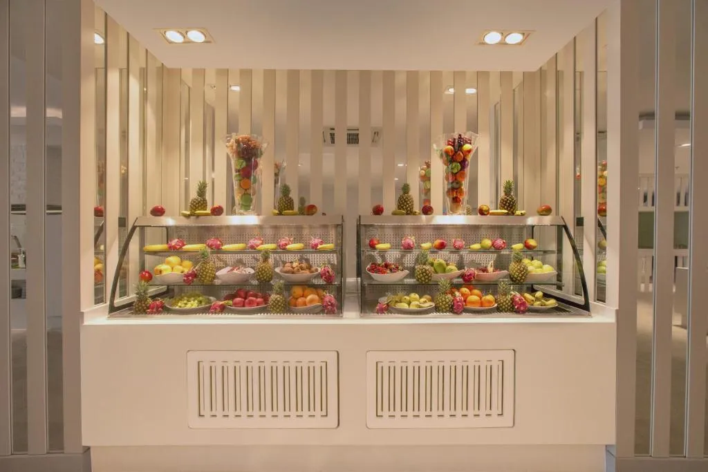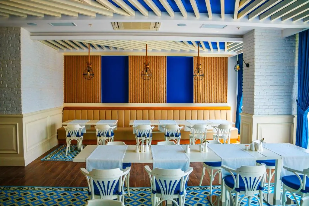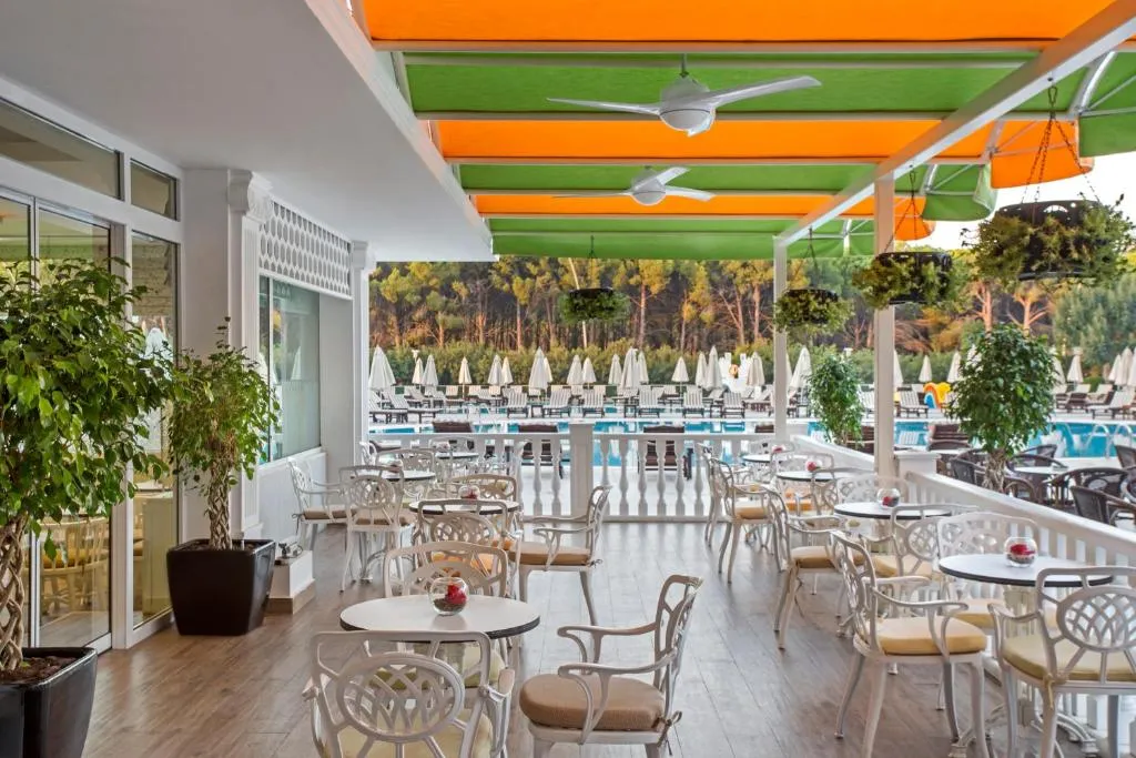 Restaurant principal; 4 restaurante a la carte cu specific pescaresc (o cina gratuita pe baza de rezervare), turcesc, mediteranean, japonez (contra cost); Aqua Snack Restaurant, Beach bar, Patisserie, Disco Bar, 6 baruri.