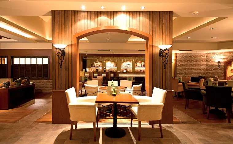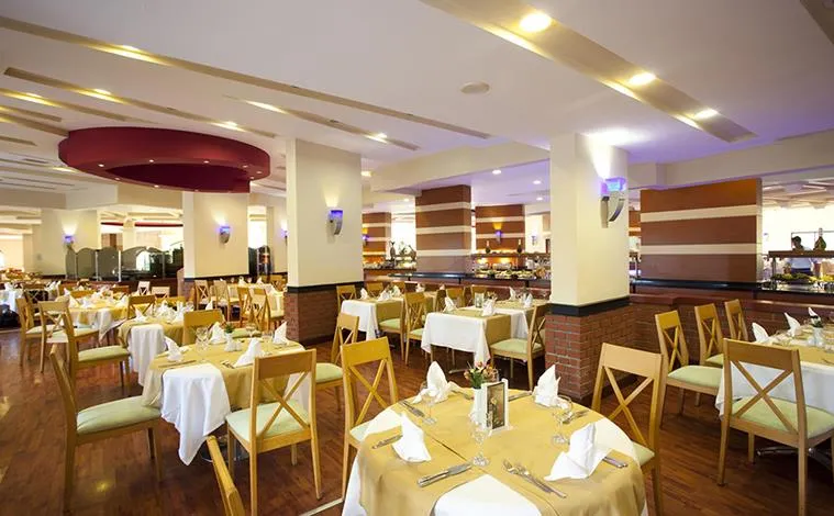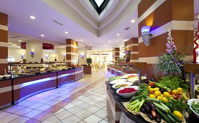 Restaurant principal tip bufet „Pinea”, „MC Arcadia” Snack Bar, Gozleme – patiserie cu produse tradiționale; Restaurant a la carte cu specific: „La Cucina” italian, „Red Wok” chinezesc, „Sushida” japonez, „Pasha” turcesc, „Mangal” barbeque; Baruri: „Odeon” Bar, „Lykia” Bar, Beach Bar, „Sailor” Bar, Lobby Bar, „Aspendos” Bar, Disco Bar.