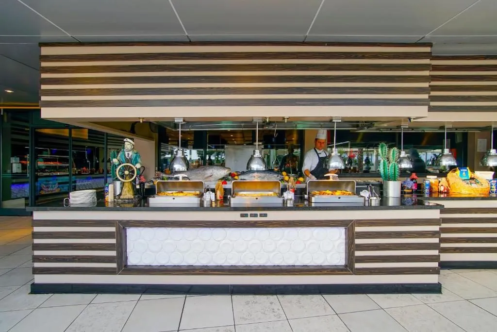 Restaurant principal tip bufet „Pinea”, „Lykia” Snack Restaurant, „Dolphine” Snack Bar, Gozleme – patiserie cu produse tradiționale; Restaurante a la carte cu specific: „Laila” italian, „Dynasty” turcesc, Sushi Bar, „El Saguaro” mexican, „Poseidon” pescăresc, „Tandoori” indian; Baruri: Lobby Lounge, „Golfers” lounge, „Ocean” Bar, „Oasis” Bar, Beach Bar, Disco Bar.