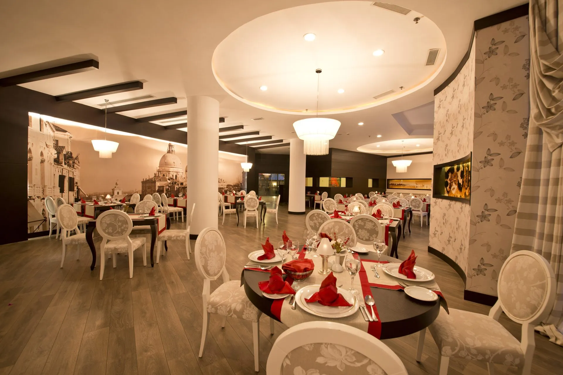 The apart hotel Limak Atlantis Deluxe Hotel & Resort is located in the vicinity of a private sandy/pebble beach. The city centre is around 7 km away. A supermarket and other shops you reach after around 7 km. There is a shuttle between the hotel and the airport (for a fee). The beach is patrolled by a lifeguard and awarded a blue flag. Here, there are sun loungers, cushions, sun umbrellas and beach towels available. Cold drinks are served at the bar on the beach. The seasonally air-conditioned, GPS-verified hotel is equipped with a 24h reception (check-in is possible around the clock), a lobby bar, Wi-Fi, internet access, a lift, a supermarket and other shops, a boutique, a hairdresser, a jacuzzi, a first aid kit, parking spaces (limited) as well as a TV lounge with satellite TV. In the outdoor area you will find a garden as well as a pool that is open seasonally, where pool towels are available for free. For children there is also a children's pool with a water slide (type open slide). Furthermore, you can relax outdoors on a terrace. Inside the hotel you can use an indoor pool. You can store your valuables in the safe, and your luggage in the hotel`s storage room. For your entertainment, the hotel offers a theatre. For the young hotel guests there is a playground. For very young guests, kid`s chairs can also be provided. For the smallest children prams can be rented in the hotel. There is also a laundry service available at an additional cost to customers. Ironing equipment can be rented at the hotel for a fee. For your comfort the hotel page will ensure you are looked after. If necessary, you can contact the medical centre at any time (for a fee). The energy supply is 220 Volts. For conventions and other business meetings, the hotel offers EXTRA_FEE (auditorium-style) conference rooms with tables, a video projector, printer, fax, scanner as well as overhead projector. A photographer can also be ordered from the hotel for business events. If you want to explore the holiday region, you can use the car rental service close to the hotel (extra fee). For guests on their honeymoon, the hotel has special offers such as personalised rooms/articles, an extra large king size bed, romantic dishes in the restaurant, a present or a basket of fruit in the room. In your hotel, a lot of focus is placed on sustainability. This includes the hotel`s own recycling bins, the provision of soap, shampoo and lotion dispensers, a central room air-conditioning, environmentally-friendly cleaning and the use of a closed-water circuit. That is why the hotel Limak Atlantis Deluxe Hotel & Resort was also awarded a sustainability certificate. Euro/Master Card is accepted as means of payment. Due to its barrier-free facilities , such as an automatic hotel door, a hotel door that can be opened manually, barrier-free entrances, wheelchair accessible rooms and wheelchair-accessible bathrooms, the hotel is also suitable for wheelchair users. Catering As catering services the hotel offers all-inclusive. Breakfast is offered from the buffet. Enjoy your lunch from the buffet. Dinner is also served as a buffet or à la carte. As part of the all-inclusive service, local and international alcoholic beverages (24h) are available around the clock and at no extra charge. For the meals, there are a restaurant with terrace (Italian, Mediterranean, calorie-reduced and gluten-free dishes) and a bar as well as a 24h snackbar. The drinks menu of the hotel includes 24h international alcoholic beverages. For dinner, guests are asked to wear appropriate clothing in the restaurant. Distances