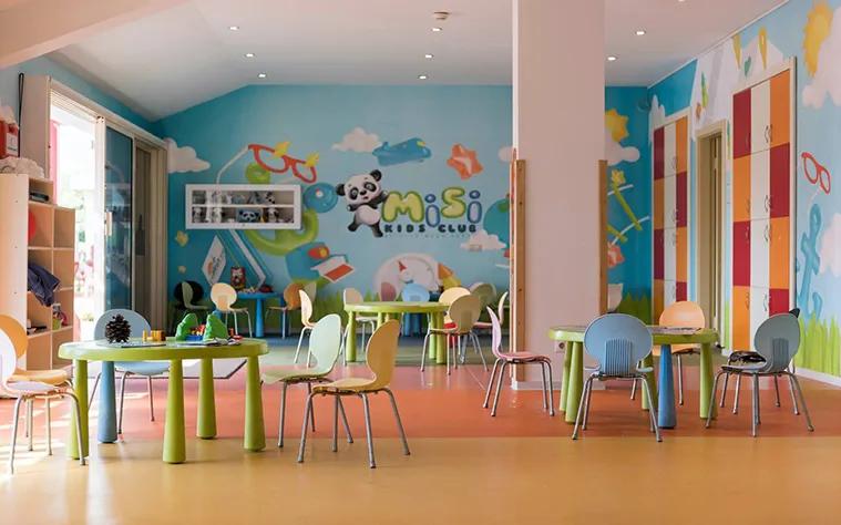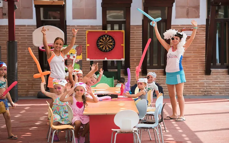 Kids Club (pentru copiii cu vârsta cuprinsă între 4-8 ani), Junior Club (pentru copiii cu vârsta cuprinsă între 9-14 ani), spaţiu de joacă, piscină, tobogane acvatice, scaune şi meniu în restaurant, cărucior (contra cost), baby-sitter (contra cost).