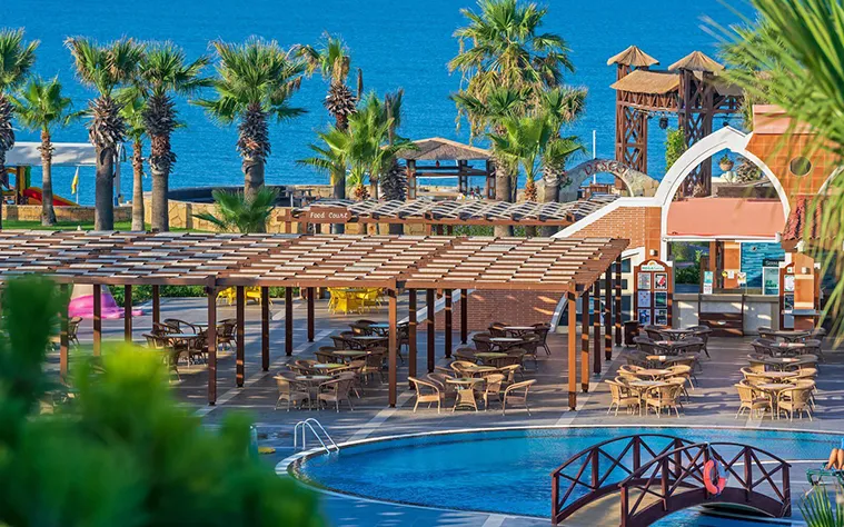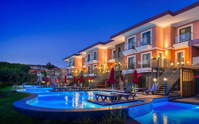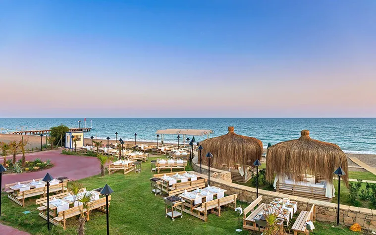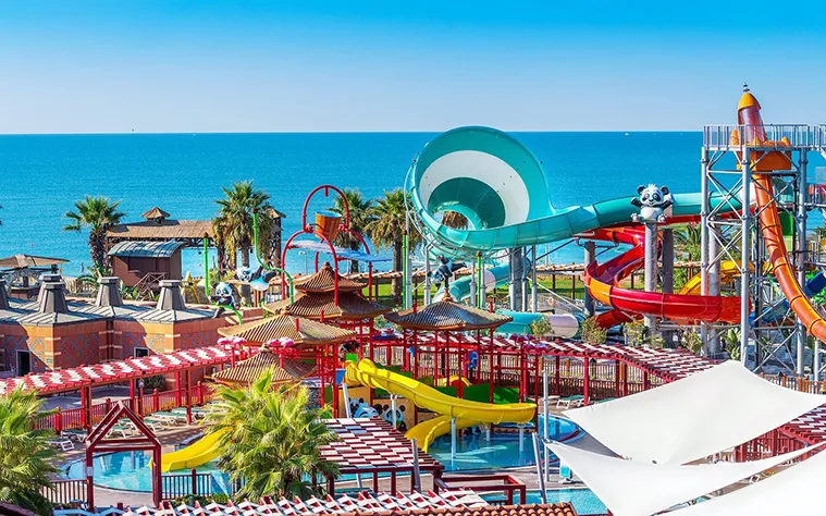 Resortul Club Mega Saray 5* construit în stil otoman, se întinde pe o suprafaţă de 120.000 mp, pe malul Mării Mediterane şi reprezintă destinaţia ideală pentru călătoriile alături de familie.