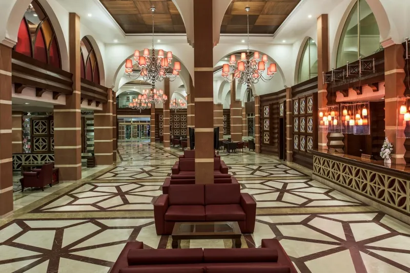 Around 400 m from the hotel`s own beach lies the hotel Club Mega Saray. The old town is around 38 km away. A supermarket is around 7 km away. There is a shuttle between the hotel and the airport (for a fee). On the beach are cushions, sun umbrellas and beach towels available. Cold drinks are served at the bar on the beach. The hotel is equipped with a 24h reception (check-in is possible around the clock), a lobby bar, Wi-Fi, a lift, a shop, a hairdresser, a first aid kit as well as parking spaces. In the outdoor area you will find a seasonally open pool (open , where sun loungers and sun umbrellas are available for free. Inside the hotel you can use an indoor pool. For your entertainment, the hotel offers a disco. For very young guests, highchairs can be provided. For the smallest children prams can be rented in the hotel. You can store your luggage in the hotel's storage room. To clean your clothes there is a laundry service (extra fee). For your comfort the hotel page will ensure you are looked after. If necessary, you can contact the medical centre (for a fee). The energy supply is 220 Volts. If you want to explore the holiday region, you can use the car rental service close to the hotel (extra fee). Catering Breakfast is offered from the buffet. Lunch and dinner are also served from the buffet. When booking all-inclusive, - for an extra fee - one meal in the à la carte restaurant is included. Your physical well-being is catered for by the pool bar. Appropriate clothing is required for lunch and dinner. Distances