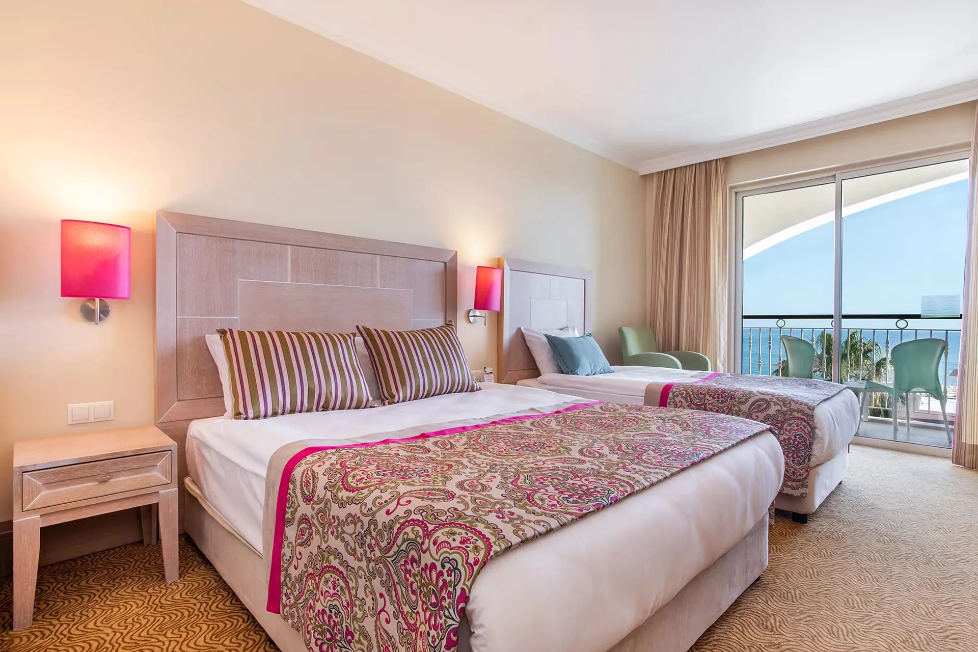 The hotel Orange County Belek is located in the vicinity of a sandy beach. There is a 24h shuttle between the hotel and the airport 24h a day. On the beach are sun loungers available. Cold drinks are served at the beach bar. The hotel has a reception, a lobby bar, Wi-Fi, internet access, a lift, a boutique, a hairdresser, a jacuzzi, parking spaces as well as a TV lounge. In the outdoor area of the property you will find a garden as well as a seasonally heated and supervised pool (open all year), where sun loungers are available for free. There is also a children's pool. Inside the hotel you can use an indoor pool. You can store your valuables in the safe, and your luggage in the hotel`s storage room. For your entertainment, the hotel offers a disco. For very young guests, highchairs can be provided. For the smallest children prams can be rented in the hotel. There is also a laundry and ironing service. Ironing equipment can also be borrowed at the hotel. For your comfort the hotel page will ensure you are looked after. If necessary, you can contact the medical centre. For conventions and other business meetings, the hotel offers a business centre as well as a (auditorium-style) conference area with printer. If you want to explore the holiday region, you can use the car rental service close to the hotel. For guests on their honeymoon, the hotel has special offers such as champagne or a basket of fruit in the room. In your hotel, a lot of focus is placed on sustainability. This includes the provision of soap and shampoo dispensers, organic food, a central room air-conditioning and environmentally-friendly cleaning. The hotel requires that all guests pay a deposit upon arrival. Catering As catering services the hotel offers all-inclusive. Dinner is served à la carte. As part of the all-inclusive service, water (24h), softdrinks (24h), coffee and tea (24h), beer (24h) as well as wine (24h) are available at no extra charge. For the meals, there are a restaurant (calorie-reduced dishes) and a 24h snackbar as well as the pool bar. The drinks menu of the hotel includes water, soft drinks, coffee and tea, beer and wine. Sports & Leisure To keep your fitness up on holiday, there is a gym for guests to use. At the beach, you can take advantage of various water sports, including bananaboats, jet skiing and water skiing. There is also the option to play billiards. With beach volleyball and darts various other sports offer a lot of variety on holiday. For your wellbeing the hotel also offers beauty treatments. Let yourself be pampered in the Hamam. Infants can be looked after in the hotel`s own baby club. For older children the care takes place in the children`s club. There is a babysitting service in the hotel, so that adults can also find some time to relax. Junior hotel guests can also let off steam in the mini disco. In terms of adult entertainment, shows are organized in the evening and there is a games room available to use. Some of the sports are already included in the price.