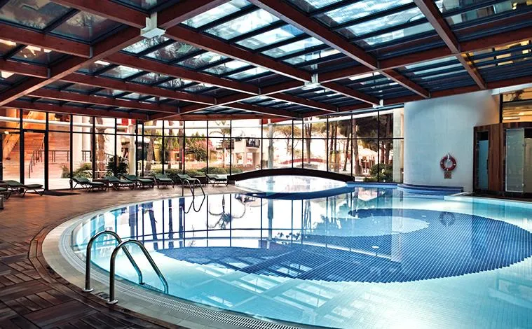 2 piscine exterioare – 1000 mp şi 626 mp, 2 piscine pentru copii – 113 mp şi 64 mp, baby pool – 40 mp, piscină exterioară cu 4 tobogane pentru adulţi şi 1 tobogan pentru copii– 450 mp, piscină interioară – 306 mp, piscină exterioară aparţinand Villa Junior Suite Area – 1010 mp.