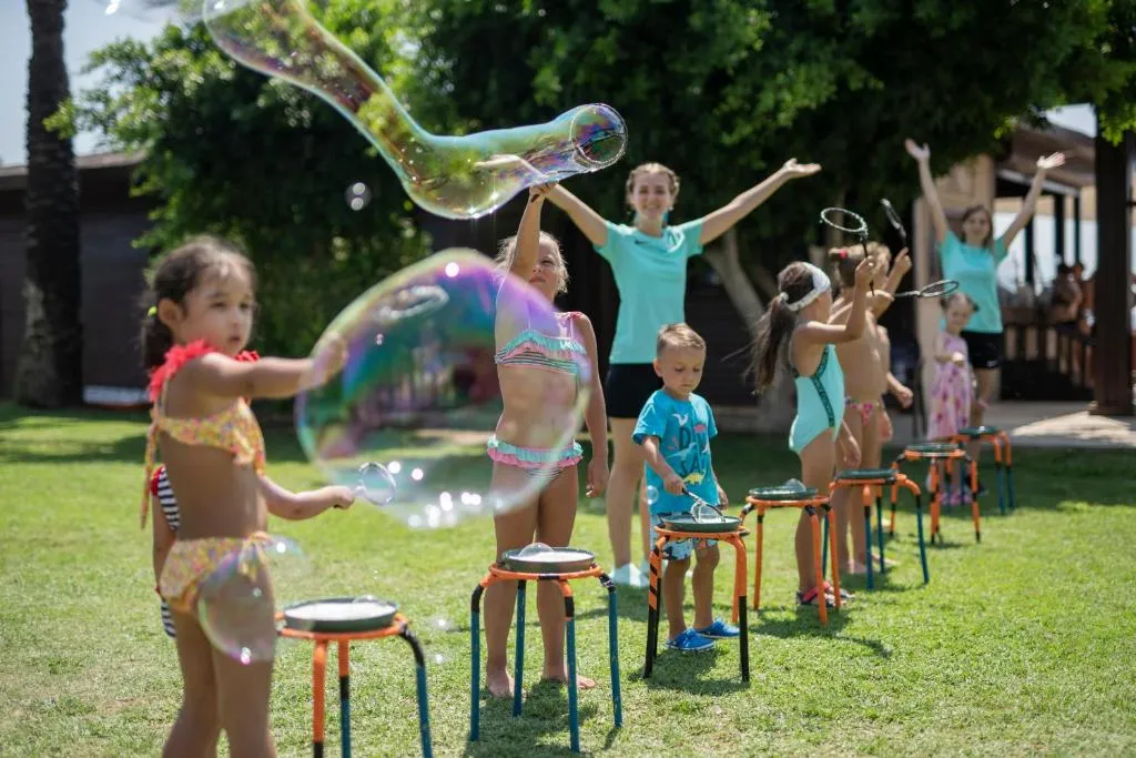 Aqua park, spaţiu de joacă, Mini Club (pentru copiii cu vârsta cuprinsă între 4-12 ani), junior club (pentru copiii cu vârsta cuprinsă între 13-16 ani), mini disco, mini darts, mini bowling, mini fotbal, meniu în restaurant, cărucior (gratuit, la cerere), baby-sitter (contra cost).