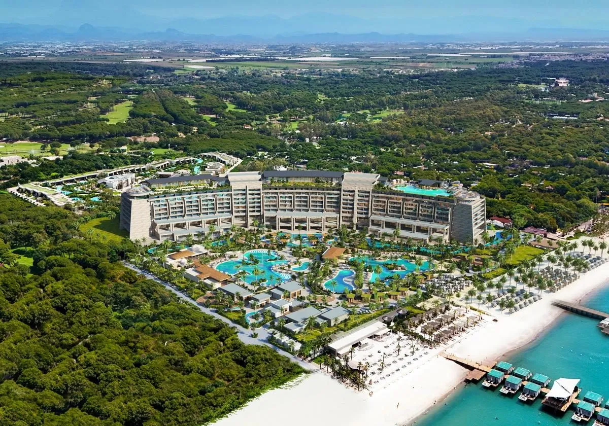 Descriere generală Hotelul Regnum The Crown este situat in Belek, direct pe o plajă privată cu nisip/pietriș. Pe plajă sunt disponibile gratuit șezlonguri și umbrele de soare. Orașul Antalya este la aprox. 38 km. În apropierea hotelului sunt diverse magazine și un supermarket. De asemenea, există o discotecă la mică distanță de hotel. Aveți la dispoziție o stație de autobuz (cca. 450 m) și o stație de taxi (cca. 150 m) cea ce vă garantează mobilitatea în vacanța dumneavoastră. Aeroportul (AYT) se află la aprox. 33 km. Un alt aeroport (GZP) este la cca. 146 km. Facilități Acesta oferă oaspeților săi recepție (check-in de la 15:00, check out până la 12:00), lobby cu bar, lift, aer condiționat, seif (posibil contra cost), minimarket, alte magazine, parcare (gratuită) și sistem securizat de intrare. Pentru a servi masa aveți la dispoziție 15 restaurante cu aer condiționat. Accesul la internet WiFi este disponibil gratuit pentru oaspeții hotelului. În plus, hotelul oferă o zonă de conferințe cu acces la internet. Serviciul de menaj este gratuit. Room service, spălătorie, călcat și serviciul medical sunt disponibile la un cost suplimentar. Este posibil să se perceapă un cost suplimentar pentru serviciul de concierge. Piscină În grădinile acestui hotelul cu parc acvatic există 3 piscine cu apă dulce precum și o piscină separată pentru copii. Acolo sunt disponibile gratuit șezlonguri și umbrele de soare. Un bar lângă piscină oferă oaspeților băuturi răcoritoare (deschis între orele 09:00 - 20:00). Catering Mic dejun (între orele 06:30 - 11:00) bufet suedez. Sport/Leisure Este disponibil: Baschet, fotbal, biliard (posibil contra cost), fitness, darts (posibil contra cost) și tenis (gratuit). Pe plajă puteți practica sporturi nautice precum jet ski și schi nautic (unele de către furnizori locali). La cca. 500 m de hotel este un teren de golf. Divertisment pentru adulți: program de animație cu spectacole de seară și muzică live. Teren de joacă. Îngrijirea copiilor: program de animație pentru copii, mini club și babysitting (contra cost). Sală de jocuri. Informații suplimentare Pentru anumite facilități sau activități se pot aplica taxe suplimentare. Unele servicii depind de anotimp și de condițiile climatice locale. Limbi de serviciu: engleză, germană, rusă și turcă. Carduri de credit: Visa, American Express și Euro/MasterCard.