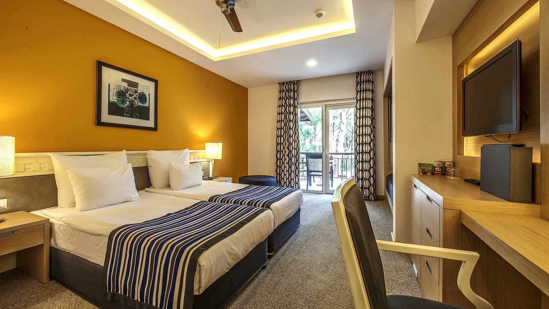 Sports & Leisure To keep your fitness up on holiday, there is a gym for guests to use. Special offers are available at the hotel for all golf enthusiasts: The 9- and 18-hole golf course (fees apply) offers optimal conditions for all golfing fans, and for your convenience also provides facilities such as a shuttle service , golf carts and trolleys. The necessary equipment you can either rent or buy at the nearby golf shop. After a round of golf you can enjoy a cool drink in the clubhouse. For an fee, you can take advantage of various water sports, including speedboats, catamaran, jet skiing and water skiing. In addition, there is an all-purpose sports field in the surroundings of the hotel. If you want to stay on the ball during your holidays, you`ll find a grass football pitch and a basketball court. During your holiday you can also take part in aerobics courses, in Zumba courses and in yoga courses. There is also the option to play billiards. Those who want to practice archery will find facilities for this at the hotel. With beach volleyball, table tennis and volleyball various other sports offer a lot of variety on holiday. In addition to a tennis court there is also a tennis school and a tennis rental. Also boccia is offered as a further leisure activity. Furthermore, various water sports such as fishing and sailing are offered in the area. A sauna awaits you for relaxation. The hotel also offers massages (extra fee) and beauty treatments (extra fee). Let yourself be pampered in the Hamam (extra fee). Spend some healthy and relaxing hours with fango as well as hydrotherapy. Infants can be looked after in the hotel`s own baby club. For older children the care takes place in the children`s club. There is a babysitting service in the hotel (extra fee) . The mini disco also offers age-appropriate entertainment for young hotel guests. Furthermore there is a youth club. In terms of adult entertainment, evening shows and live music are presented and there is a games room available to use. Some of the sports are already included in the price. Additional information This hotel is gay-friendly. The hotel staff speak English, German and Turkish.