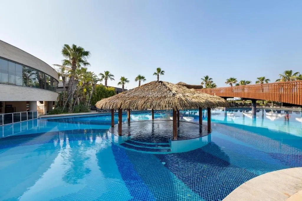 Plajă proprie cu nisip și pietriș, lungime – 200 m; Piscina principală – 900 mp, piscină cu tobogane pentru adulți – 233 mp, piscină cu tobogane pentru copii – 287 mp, piscină pentru bebeluși – 62 mp, piscină interioară cu secțiune pentru copii și jacuzzi -270 mp; Șezlonguri, saltele, umbrele și prosoape gratuite atât la plajă, cât și la piscină.