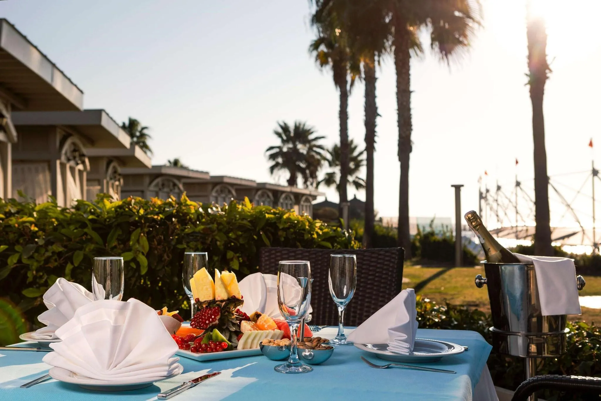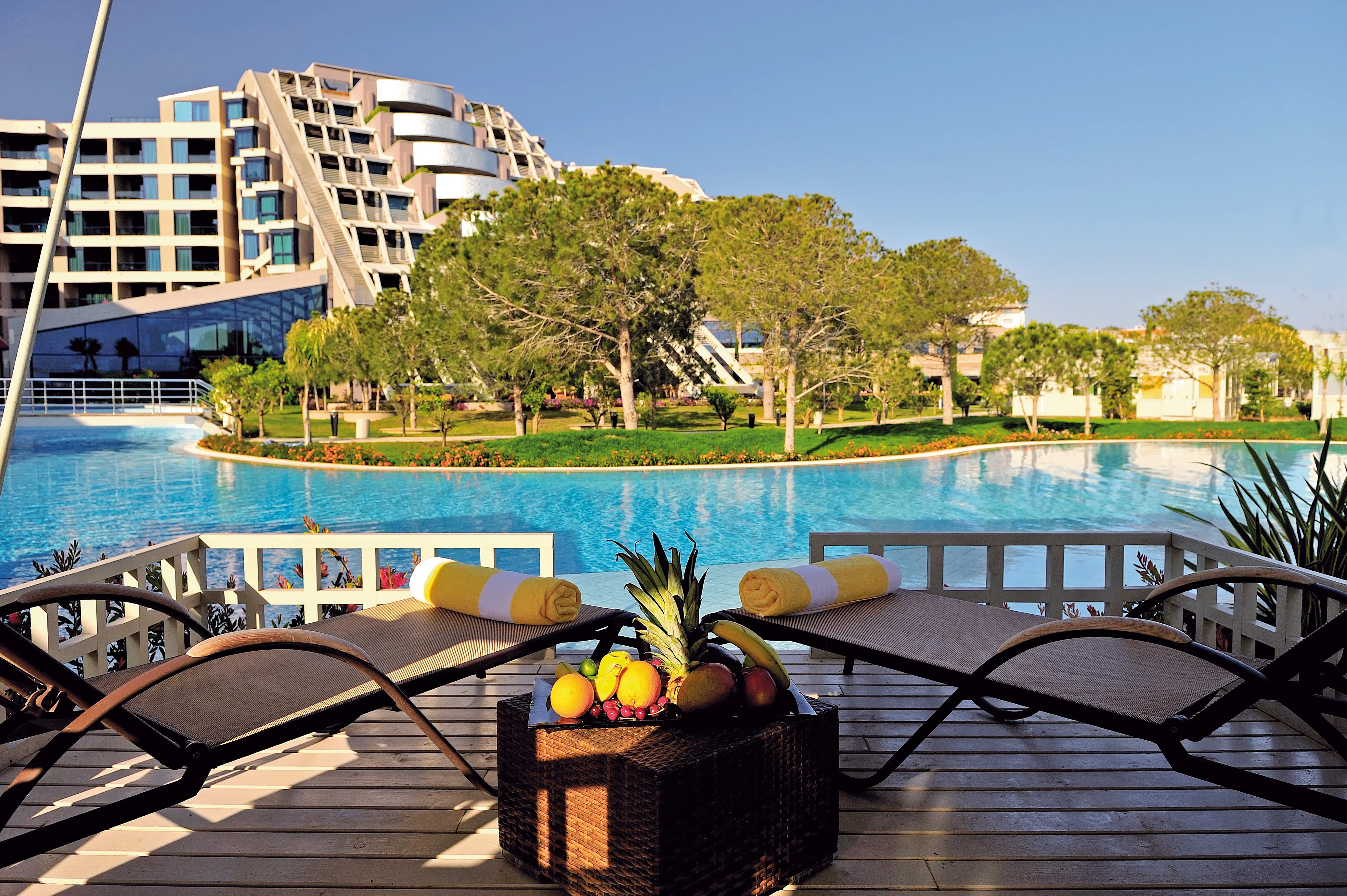 Grab a bite at Turqouise, one of the property's 7 restaurants, or stay in and take advantage of the 24-hour room service. Snacks are also available at the 2 coffee shops/cafes. Mingle with other guests at the complimentary reception, held daily. When you are in need of a refreshing drink, visit the swim-up bar or one of 13 bars/lounges, or 4 poolside bars. Location:554 Total number of rooms; 5 Number of floors (main building); 3 Annexe (s); 2 Number of floors (annexe); 360 Double rooms; 4 Junior suites; 51 Suites Hotel type:hotel Methods of payment:American Express; MasterCard; Visa Distances (in meters):City centre (2000); Nearest Bus / Metro Stop (40000); Airport (22100); Beach; Golf course (1000) Room facilities (Standard room):1 Bathroom; Disability-friendly bathroom; Hairdryer; Wi-fi; TV; Centrally regulated air conditioning; Safe; Wheelchair-accessible; Smoking rooms; Cot on demand Facilities:Wheelchair-accessible; Car park; Garage; 24-hour reception; Check-in hour; Check-out hour; Mobile phone coverage; Wi-fi; Airport Shuttle (Extra Fee); Room service; Laundry service; Medical service (Extra Fee); Babysitting service (Extra Fee); Multilingual staff; 24-hour security; Bellboy service; Air conditioning in public areas; Hotel safe; Currency exchange facilities; Cloakroom; Lift access; Newspaper stand; Supermarket; Shop; Garden; Terrace; Concierge; Sun terrace; Gym; Newspapers; Luggage room; 10 Dining area; Clothes dryer; Grill/BBQ; Private pool; Private beach area; Library; Electric kettle; Towels and bed linen Catering:Café; Bar; Restaurant; Non-smoking area; Highchairs; Poolside snack bar; Banquet hall; Swim-up bar; Air conditioning in Restaurant; Breakfast room Business:Conference room; Meeting room; Projector; Conference hostess; Printer; Photocopier; Business centre; Fax Entertainment:Indoor freshwater pool; Outdoor freshwater pool; Children’s swimming area; Sun loungers; Parasols; Children playground; Kids’ club; Entertainment programme for adults; Entertainment programme for children; TV lounge; Game room; Nightclub; Pub; Outdoor Rooftop Swimming Pool; Waterpark Health:Sauna; Steam bath; Hot tub; Turkish bath (hamam); Solarium ; Massage (Extra Fee); Spa treatments; Hairdressing salon; Beauty salon; Spa centre