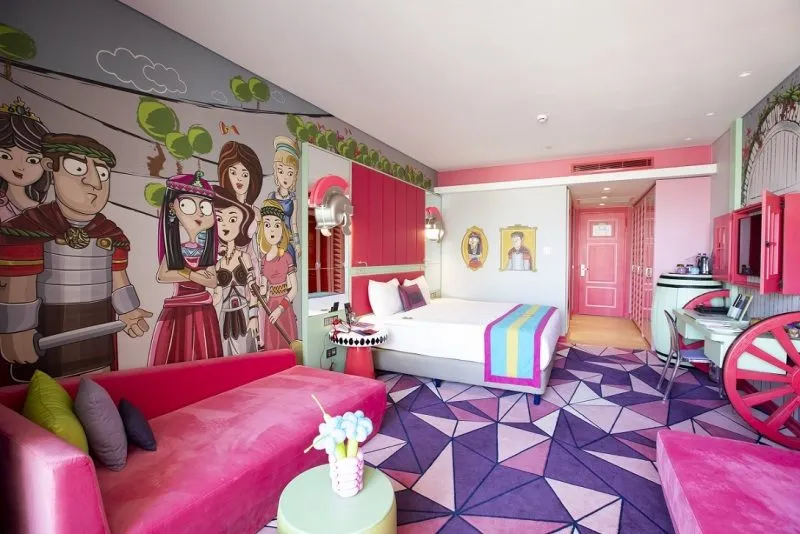 The hotel The Land Of Legends Kingdom Hotel lies approximately 3 km from the sea. The old town is around 41 km away. A supermarket and other shops you reach after around 1,7 km. Nearby there is a leisure park which offers entertainment in high season. The hotel is equipped with a 24h reception (check-in is possible around the clock), a lobby bar, Wi-Fi, a lift, a supermarket and other shops, a hairdresser, a first aid kit as well as parking spaces. In the outdoor area you will find a pool that is open seasonally (open from April to November), where sun loungers and sun umbrellas are available for free. There is also a children's pool. Inside the hotel you can use an indoor pool. For your entertainment, the hotel offers a disco. For very young guests, highchairs can be provided. For the smallest children prams can be rented in the hotel. You can store your luggage in the hotel's storage room. There is also a laundry service available at an additional cost to customers. For your comfort the hotel page will ensure you are looked after. If necessary, you can contact the medical centre (for a fee). If you want to explore the holiday region, you can use the car rental service close to the hotel (extra fee). Catering Breakfast is offered from the buffet. Your physical well-being is catered for by the pool bar. Appropriate clothing is required for lunch and dinner. Distances