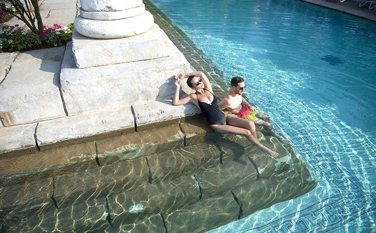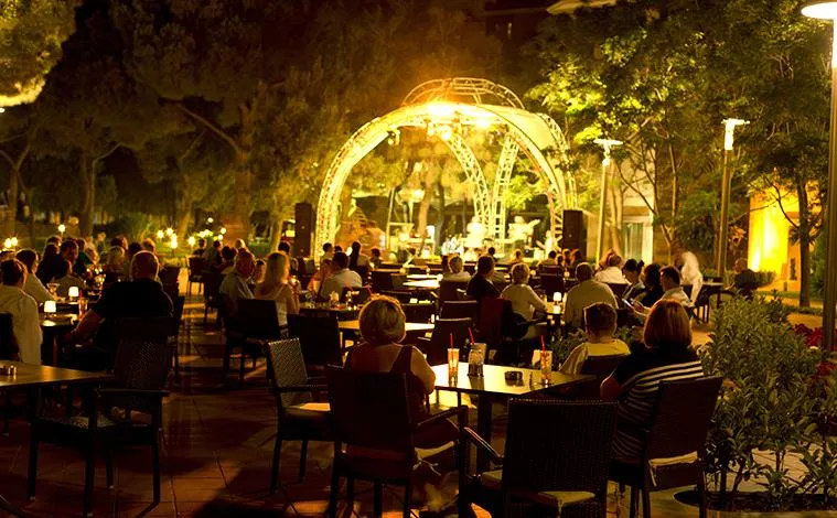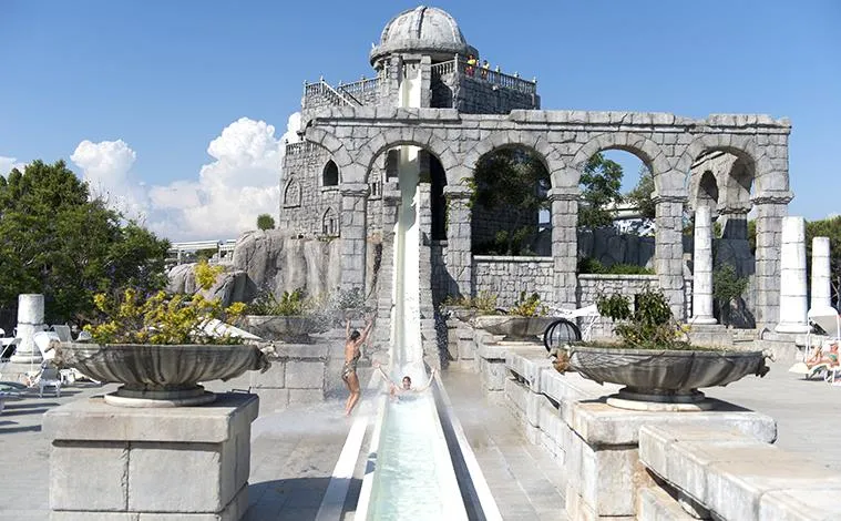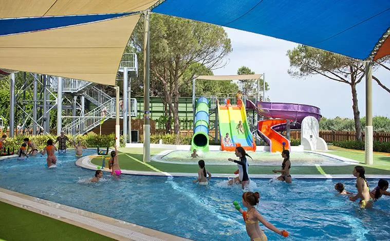 Plajă proprie, cu nisip și pietriș, lungime: 415 m – 220 mp Adults Only (16 ani+), 20 de pavilioane – bar și zonă Adults Only, ponton – 1.200 mp: bar și zonă cu șezlonguri, Snack Bar (cca. 1000 mp), 18 șezlonguri special amenajate pentru persoanele cu dizabilități, spațiu pentru copii și adolescenți; piscina Antique cu 3 tobogane (9 ani+) - 950 mp, piscina Zero - 875 mp, Secret Garden Pool - 1000 mp, piscină pentru copii – 45 mp, piscină interioară – 115 mp, piscină interioară pentru copii – 13 mp, Baby Pool - 29 mp, piscină Activity pentru copii, acoperită – 74mp; 6 tobogane pentru copii la Fancy Land; Șezlonguri, saltele, umbrele și prosoape gratuite atât la plajă, cât și la piscină.