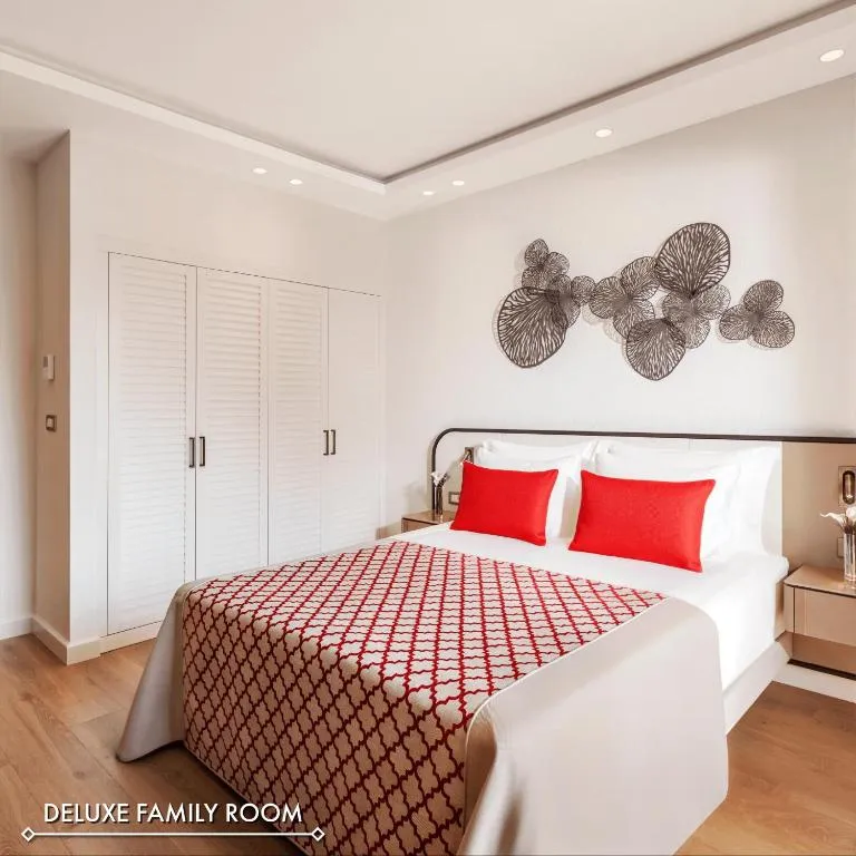 Dotări camere: baie cu cadă / duș, uscător de păr, produse cosmetice, halate de baie pentru adulți și copii, aer condiționat, seif, mini-bar, TV, telefon, acces internet Wi-Fi, facilități ceai / cafea, balcon / terasă.