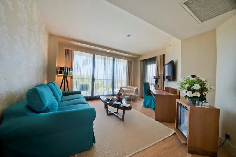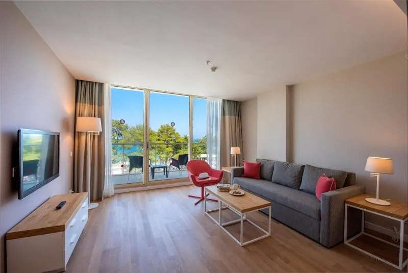 Sports & Leisure To keep your fitness up on holiday, there is a gym for guests to use. A minigolf course offers fun for the family. For an fee, you can take advantage of various water sports, such as water aerobics. During your holiday you can also take part in aerobics courses, in Zumba courses and in yoga courses. There is also the option to play billiards. With beach volleyball, darts and table tennis various other sports offer a lot of variety on holiday. In addition to a tennis court with floodlighting there is also a tennis rental. Also boccia is offered as a further leisure activity. A sauna awaits you in the wellness area. The hotel also offers massages (extra fee). Children can be looked after in the hotel`s own miniclub. Your accommodation offers a babysitting service (extra fee), so that adults can also find some time to relax. The hotel also offers a games room for adults. Additional information The hotel, last renovated in 2018, has a total of 360 rooms.