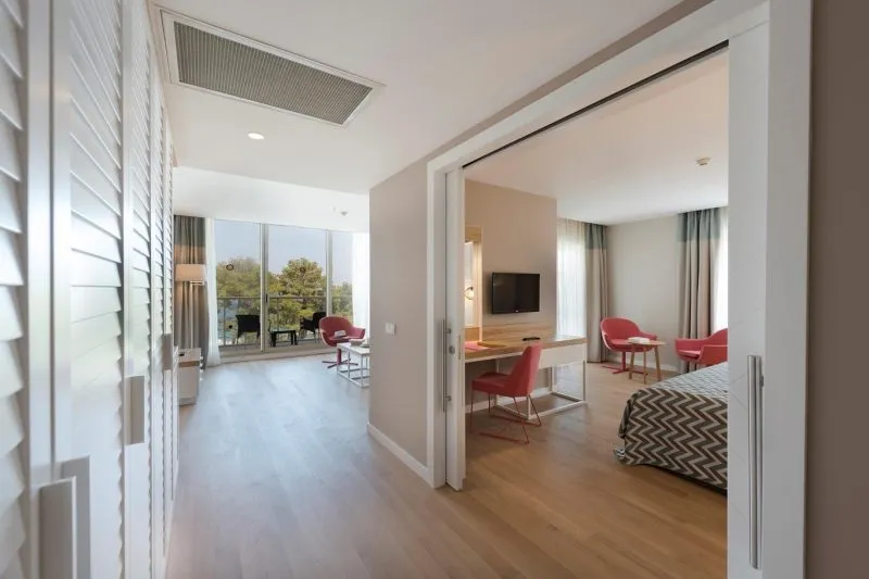 Sports & Leisure To keep your fitness up on holiday, there is a gym for guests to use. A minigolf course offers fun for the family. For an fee, you can take advantage of various water sports, such as water aerobics. During your holiday you can also take part in aerobics courses, in Zumba courses and in yoga courses. There is also the option to play billiards. With beach volleyball, darts and table tennis various other sports offer a lot of variety on holiday. In addition to a tennis court with floodlighting there is also a tennis rental. Also boccia is offered as a further leisure activity. A sauna awaits you in the wellness area. The hotel also offers massages (extra fee). Children can be looked after in the hotel`s own miniclub. Your accommodation offers a babysitting service (extra fee), so that adults can also find some time to relax. The hotel also offers a games room for adults. Additional information The hotel, last renovated in 2018, has a total of 360 rooms.