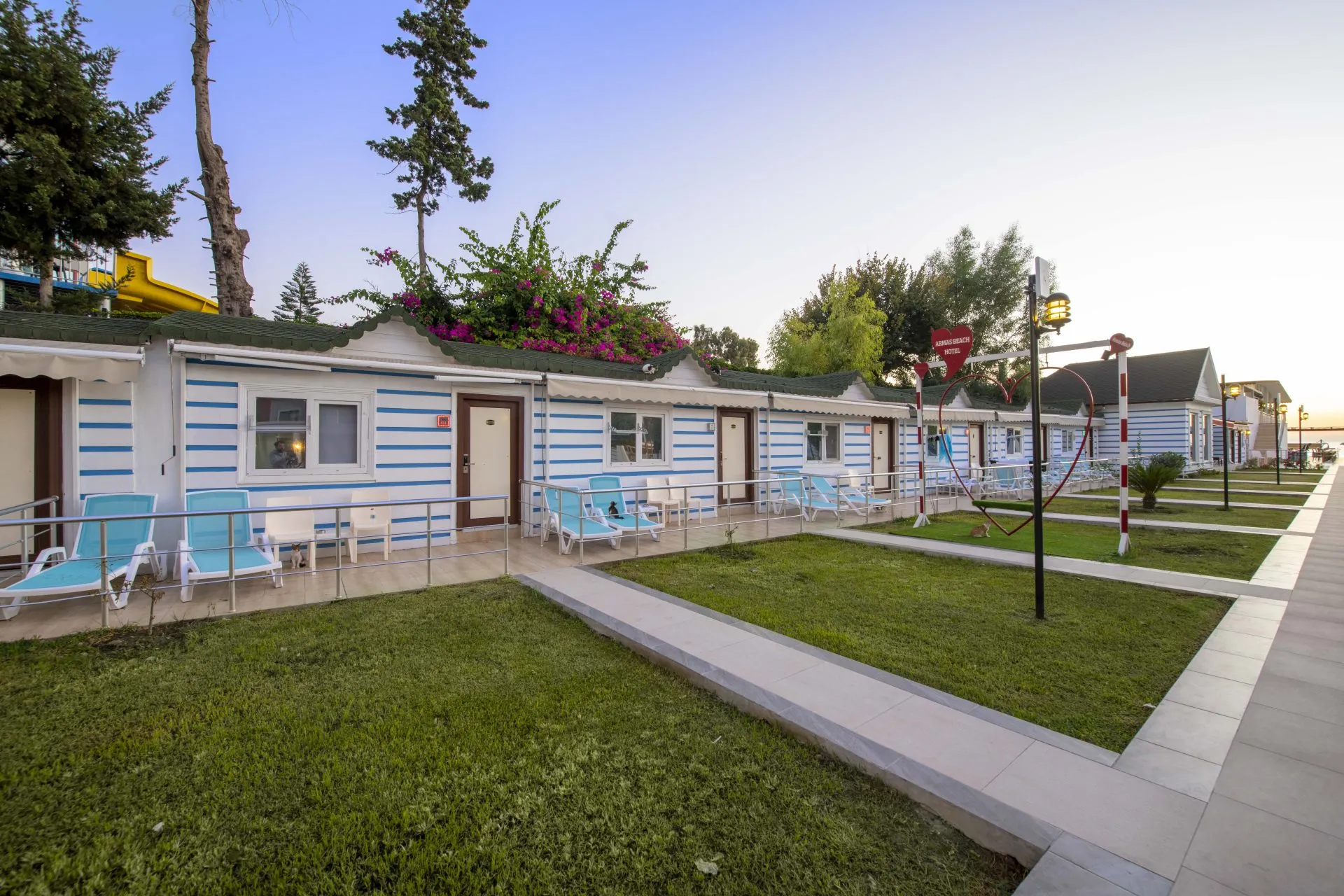 Descriere generala:Poziționată la 1. 2 kilometru(i) de centrul orașului, unitatea de cazare asigură un acces ușor înspre tot ce are de oferit această destinație. Cele mai apropiate mijloace de transport public se află la 1. 2 kilometru(i) de proprietate. Călătorii vor găsi aeroportul la 1. 2 kilometru(i). Numărul total de camere de oaspeți este de 179. Această proprietate a fost recondiţionată în anul 2012. Mai mult, în spaţiile comune se poate utiliza conexiunea wireless la internet. Având în vedere că acest hotel dispune de o recepţie deschisă 24 de ore, oaspeţii sunt mereu bineveniţi. Armas Beach Hotel este loial practicilor durabile ecologice. Oaspeţii vor fi încântaţi de mesele servite în unitate de cazare. În ceea ce priveşte relaxarea, toți cei care stau în această unitate de cazare vor fi răsfăţaţi cu o gamă variată de oportunităţi de întreţinere care le sunt puse la dispoziţie. O gamă largă de opţiuni de divertisment de primă clasă sunt puse la dispoziţia oaspeţilor pentru confortul acestora. Armas Beach Hotel poate percepe o taxă pentru unele dintre aceste servicii. Locatia:2006 Anul construcției; 2012 Anul celei mai recente renovări; 179 Numărul total al camerelor; 5 Numărul etajelor (clădirea principală); 3 Camere single; 128 Camere duble; 1 Vile; 1 Camere adaptate pentru persoane cu disabilități; Camere alăturate (comunicante) Tip hotel:hotel Metode de plata:EC; MasterCard; Visa Distanta (in metri):Centrul orașului (1300); Stație de autobuz/tren (1300); Cea mai apropiată stație de autobuz/metrou (45000); Aeroport (1300) Facilitati:Se permite accesul cu animale de companie mici (sub 5 kg); Se permite accesul cu animale de companie mari (peste 5 kg); Accesibil scaunelor cu rotile; Parcare; Garaj; Recepție deschisă 24 de ore; Ora sosirii (check-in); Ora plecării (check-out); Internet prin cablu (Extra Fee); Wi-Fi (Extra Fee); Serviciu în cameră (Extra Fee); Serviciu de spălătorie (Extra Fee); Servicii medicale (Extra Fee); Aer condiționat în locurile publice; Facilități de schimb valutar; Lift; Magazin; Grădină; Terasă la soare; Sală de sport Catering:Cafenea; Bar; Restaurant; Zonă de nefumători; Scaune pentru copii; Snack bar lângă piscină; Aer condiționat în restaurant Divertisment:1 Piscină în aer liber cu apă dulce; Șezlonguri; Parasolare; Zonă de joacă pentru copii; Club de copii; Program de divertisment pentru adulți; Sală cu TV; Sală de jocuri Sanatate:Saună; Baie de aburi; Baie turcească (hamam); Masaj (Extra Fee); Salon de coafură Tipuri de mancare:Cină a la carte; All inclusive Sporturi:Gimnastică acvatică; Tenis de masă; Aerobic; Fitness; Biliard (Extra Fee); Darts Healthy & Safety (COVID):Other Protocol