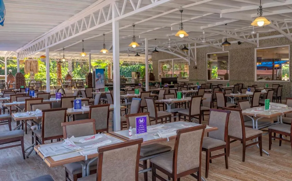 Restaurant principal, 2 restaurante a la carte cu specific otoman si pescaresc (o cina gratuita pe durata sejurului la restaurantul otoman), Snack Restaurant, Lobby Bar, Pool Bar, Beach Bar, Disco Bar.