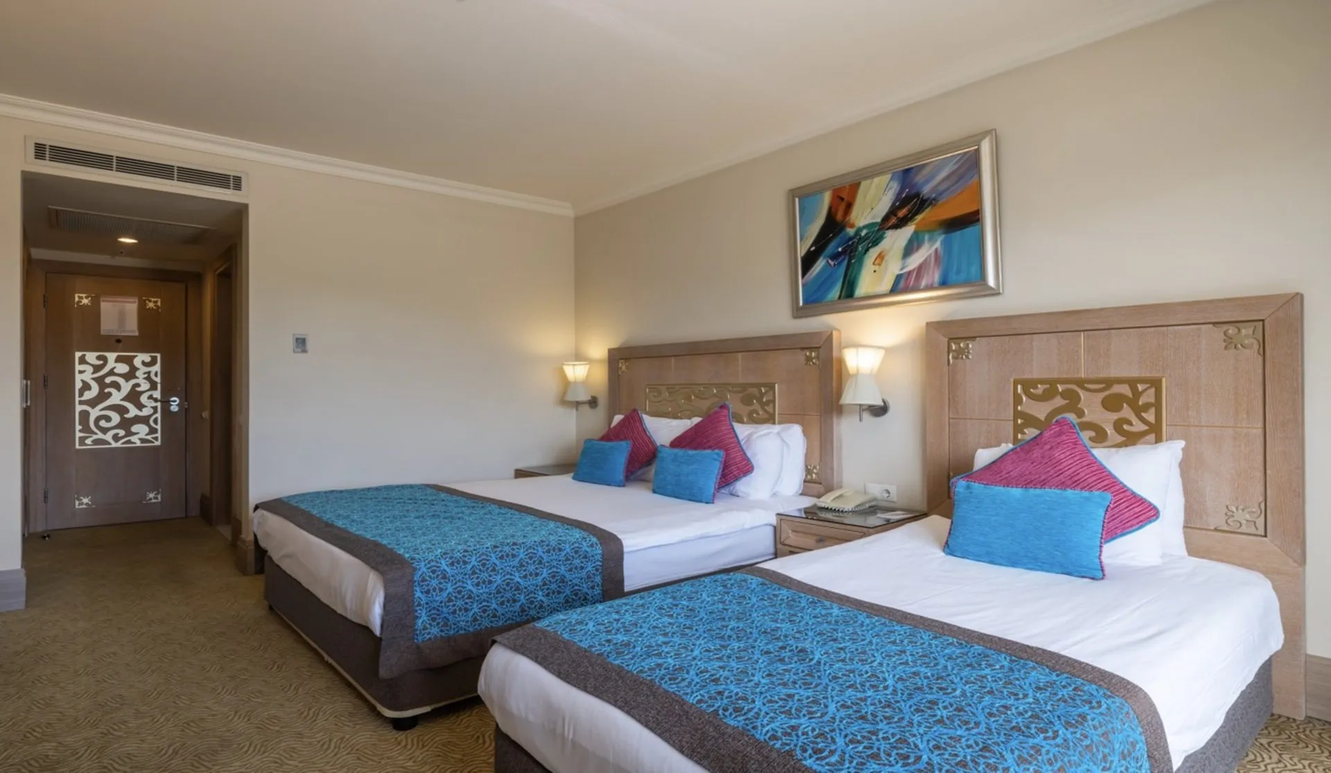 The accommodation Crystal De Luxe is located approximately 75 km from a beach. The city centre is around 38 km away. There is a 24h shuttle service between the hotel and the airport (for a fee) 24h a day. Cold drinks are served at the beach bar. To reach the beach a shuttle (for a fee) is provided. The hotel is equipped with a reception, a lobby bar as well as Wi-Fi (for a fee). Outside there is a children's pool. Catering Enjoy your lunch from the buffet. Dinner is served as a buffet with salads. The drinks menu of the hotel includes coffee and tea. A picnic bench can be used by guests for self-catering. Distances