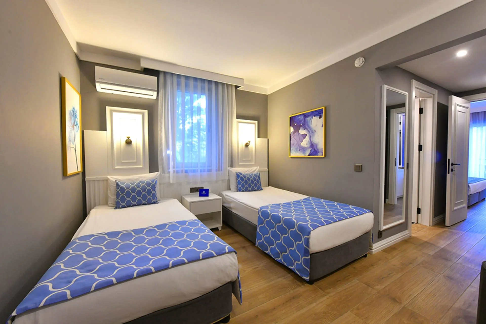 Sports & Leisure To keep your fitness up on holiday, there is a gym for guests to use. A minigolf course offers fun for the family. In and around the hotel, you can take advantage of various water sports, including bananaboats, jet skiing and water aerobics. If you don`t want to miss out on training with a ball during your holidays, you`ll find a football pitch and a basketball court. During your holiday you can also take part in aerobics courses, in Zumba courses and in yoga courses. There is also the option to play badminton. With beach volleyball, darts and table tennis various other sports offer a lot of variety on holiday. In addition to 2 tennis courts (carpet) there is also a tennis rental. For cyclists there is a storage room. Also volleyball as well as boccia are offered as further leisure activities. A sauna awaits you for relaxation. The hotel also offers massages and beauty treatments. Let yourself be pampered in the Hamam. Spend some healthy and relaxing hours with heat therapy. Infants can be looked after in the hotel`s own baby club. For older children the care takes place in the children`s club. There is a babysitting service in the hotel. The mini disco also offers age-appropriate entertainment for young hotel guests. Furthermore there is a youth club. In terms of adult entertainment, evening shows and live music are presented. Some of the sports are already included in the price. Additional information The accommodation, last renovated in 2022, has a total of 399 rooms. Of these, 3 rooms have disabled access. Larger groups of young people under the age of 25 are not allowed in this property, as this is a hotel especially for families. The hotel staff speak English, German, French, Russian and Turkish.