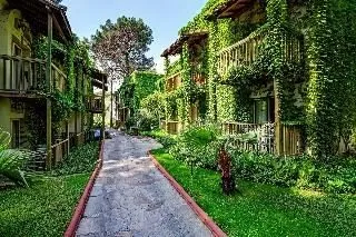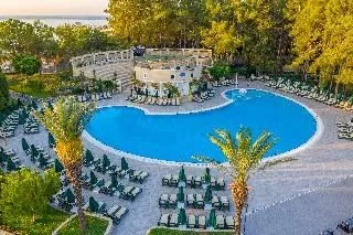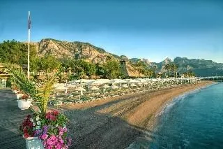 Nestled between the pine forests of the Taurus Mountains and the azure Mediterranean Sea, this hotel offers a tranquil escape near Kemer. Located 15 km from Kemer's center, 25 km from Antalya, and 50 km from the airport, it provides convenient access to area attractions. A variety of a'la carte restaurants and themed bars offer a wide selection of high-quality food and drinks. The modern classic rooms feature comfortable armchairs, flat-screen TVs, and private balconies. Guests can relax by the open swimming pool or children's pool, enjoy the water slides and hot tub, or stay active with volleyball, tennis, and a fitness center.
