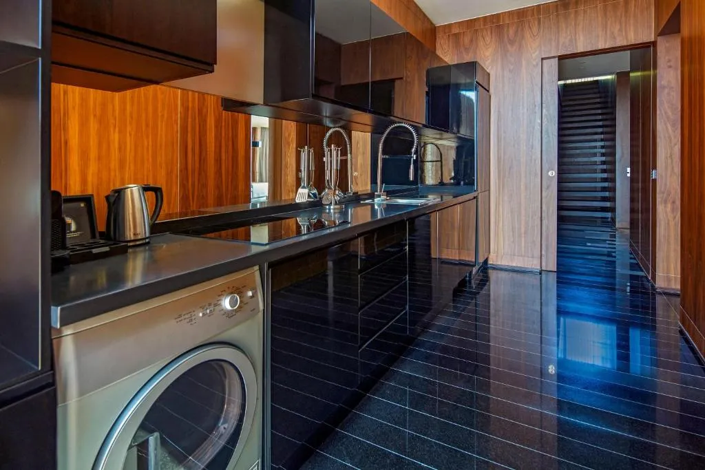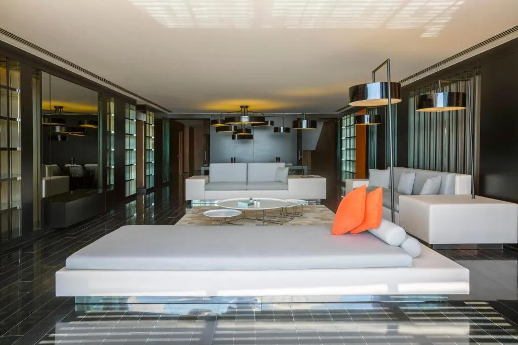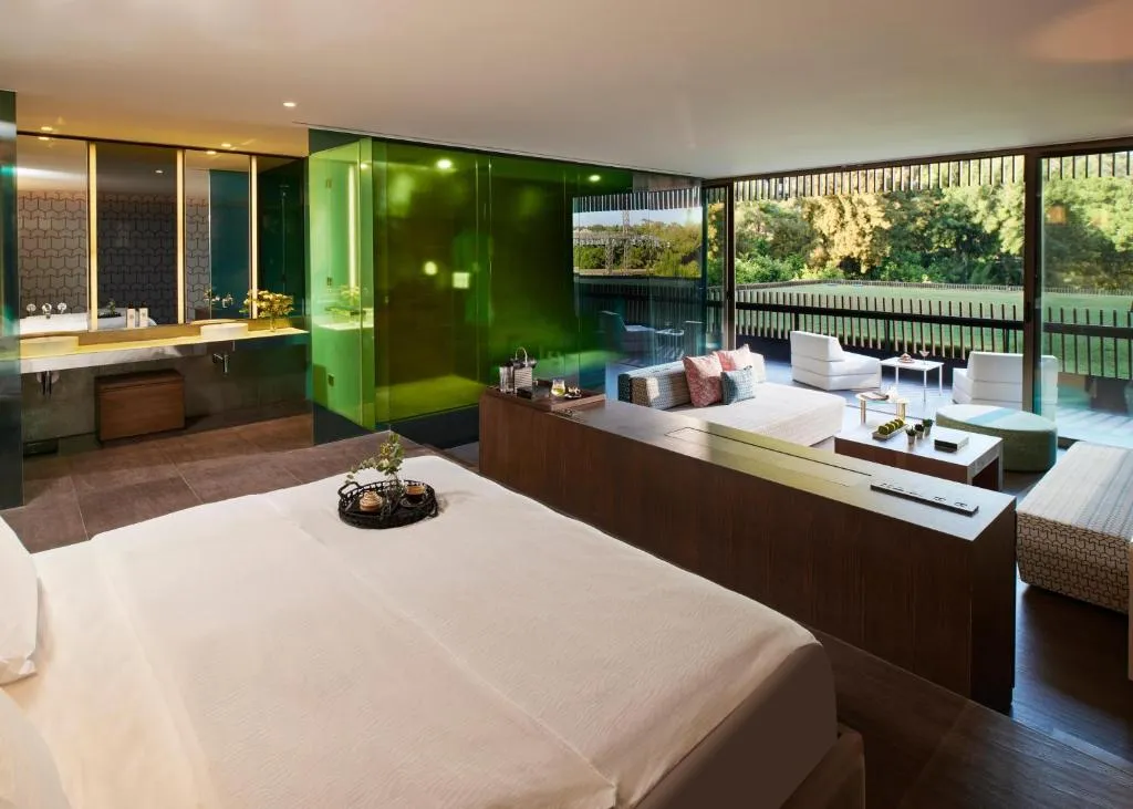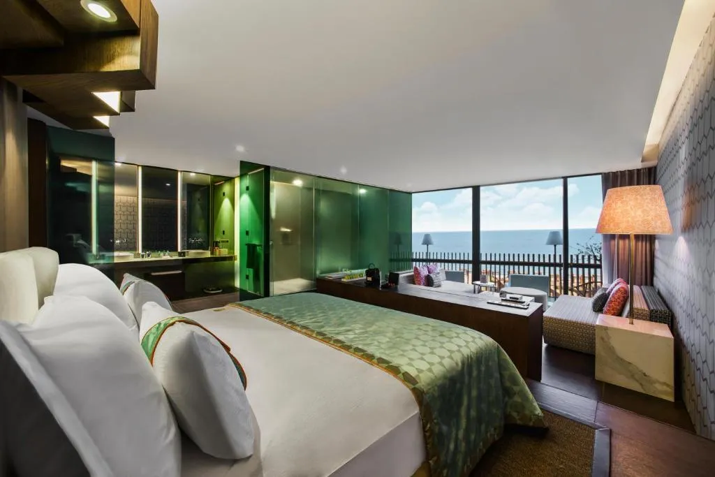 Dotari camere: baie proprie cu duş/jacuzzi, WC, TV, telefon, seif digital, halat si papuci de baie, cantar, produse de baie Bottega Veneta, cutie cu produse de igiena atat pentru doamne cat si pentru domni, produse de baie pentru copii cu varsta de 0-11 ani, oglinda de machiaj, conexiune internet cu viteza, kettle si expressor Nespresso, sistem electronic pentru draperii, aer condiționat, uscator de par, balcon/terasă.