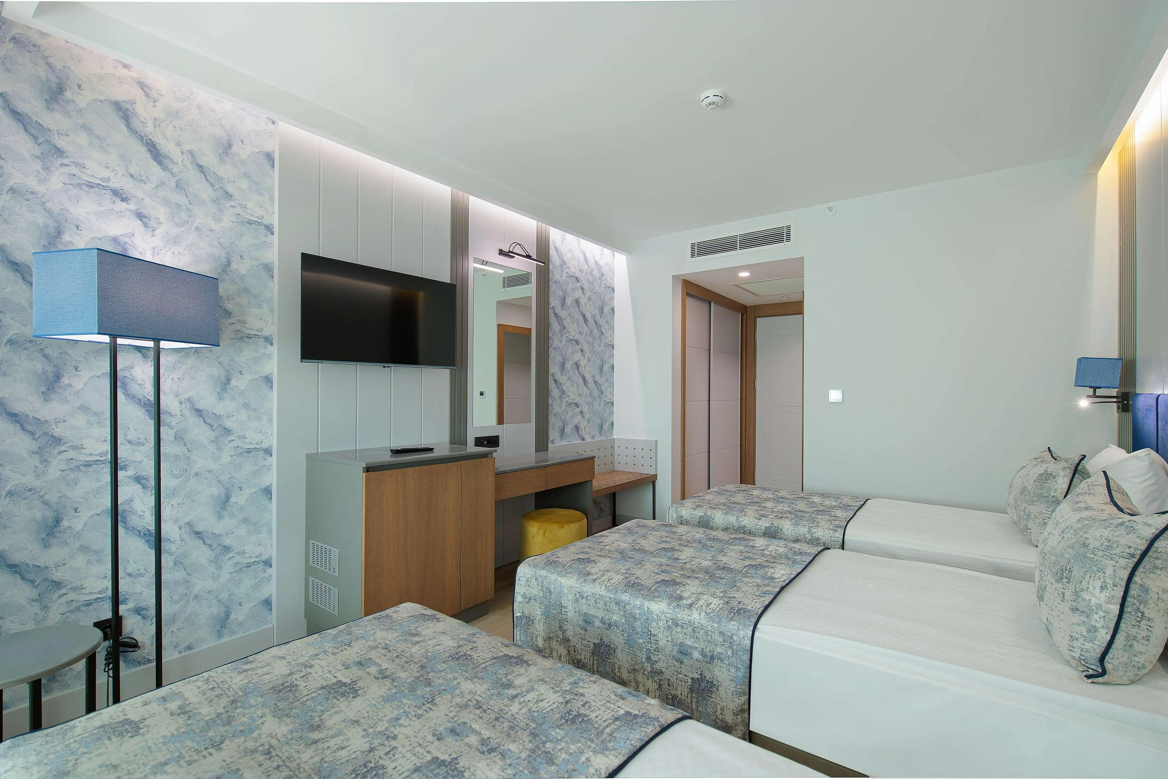 This wonderful hotel is located on the coast, right on the beach, and guests have the unique splendours of the Mediterranean at their feet. Guests will find Kemer town centre and the tourist centre just 5 minutes away. It is 45 km to Antalya city centre and 55 km to Antalya Airport. Guests of this establishment can enjoy privileged and outstanding service through warm, sincere, friendly, respectful and hard-working hotel staff. This hotel offers a mini supermarket, a bar and a disco, amongst other facilities. The younger guests will enjoy the children's playground and the kids' club. All rooms come with a private bathroom with shower and modern amenities to ensure utmost comfort.