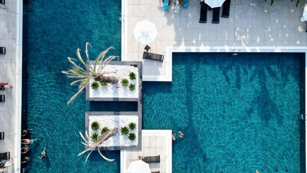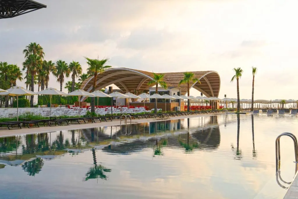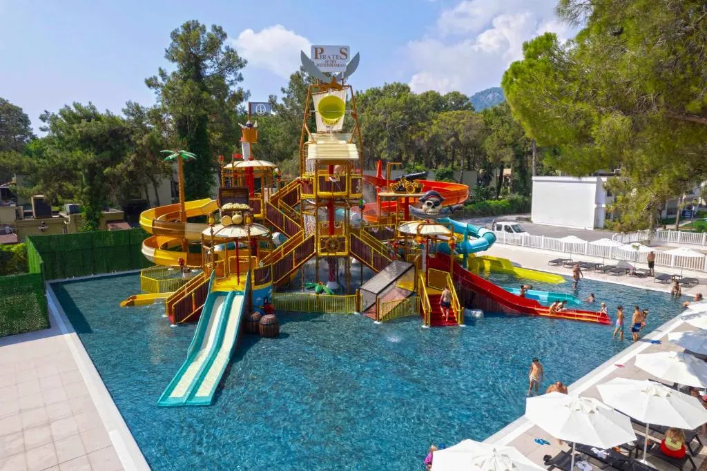 La 50 de metri de plaja proprie; piscină principală cu 4 tobogane – 120 mp, piscină pentru copii – 56 mp, piscină interioară pentru copii – 3 mp, piscină interioară – 47 mp; Umbrele, șezlonguri și prosoape gratuite atât la plajă, cât și la piscină.