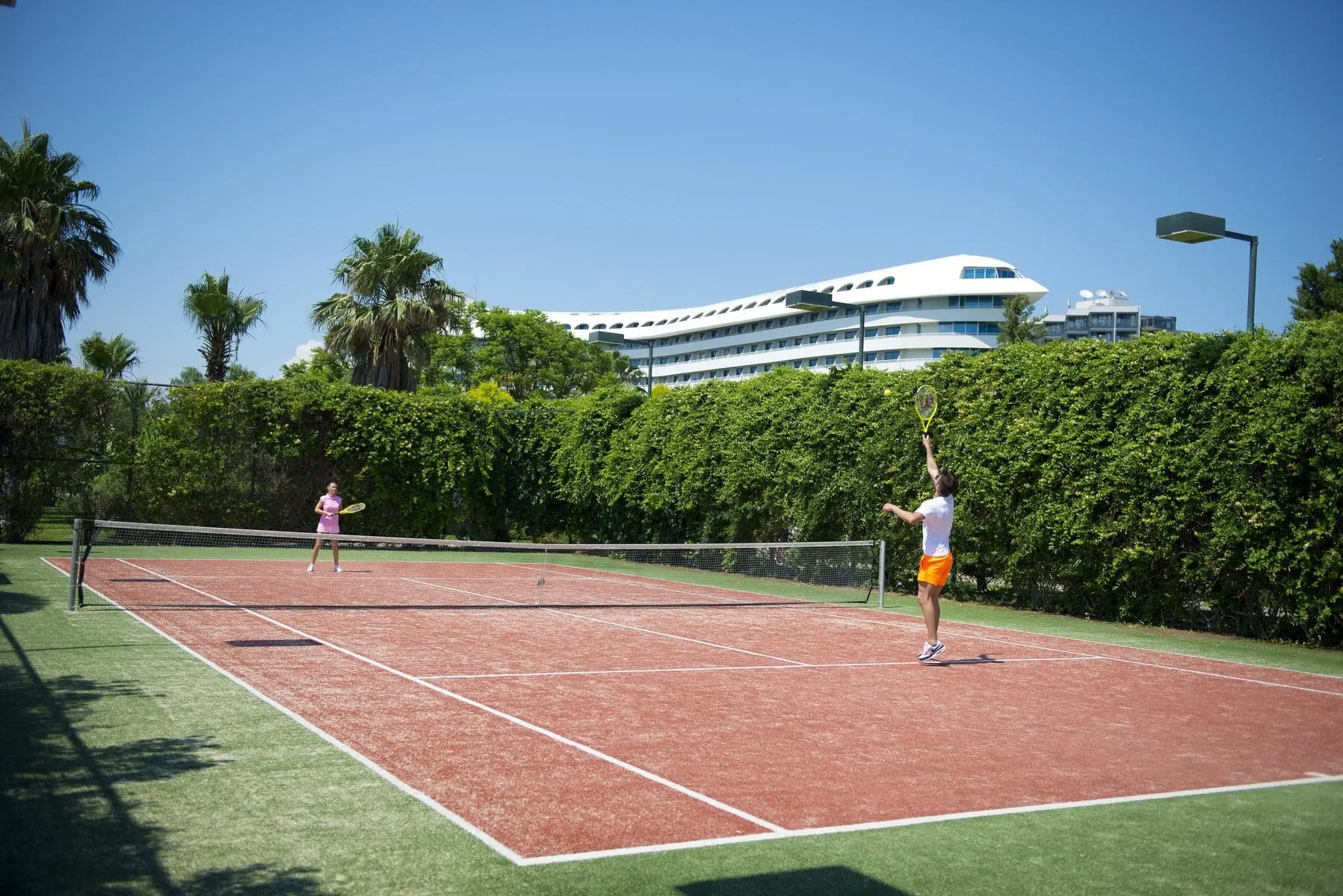 Descriere generală Hotelul Concorde De Luxe Resort este situat direct pe o plajă privată cu nisip. Pe plajă sunt disponibile gratuit șezlonguri și umbrele de soare. Orașul Antalya este la aprox. 16 km. Locul de cazare are la dispoziție mașini de închiriat. De asemenea, aveți în apropiere o stație de taxi (cca. 50 m) cea ce vă garantează mobilitatea în timpul vacanțelor. Aeroportul (AYT) se află la aprox. 17 km. Un alt aeroport (GZP) este la cca. 0 m. Facilități Resortul dispune de peste 401 camere. Acesta oferă oaspeților săi recepție deschisă 24h (check-in de la 15:00, check out până la 12:00), lobby cu bar, lift, aer condiționat, minimarket, alte magazine, discotecă și parcare (gratuită). Pentru a servi masa vă stau la dispoziție 9 restaurante cu aer condiționat și un snackbar. Accesul la internet WiFi este disponibil gratuit pentru oaspeții hotelului. În plus, hotelul oferă o zonă de conferințe cu acces la internet. Pentru oaspeții care depind de un scaun cu rotile, hotelul oferă băi parțial accesibile pentru scaune cu rotile și acces fără bariere. Serviciul de menaj este gratuit. Room service, spălătorie, călcat și serviciul medical sunt disponibile la un cost suplimentar. Piscină Zona exterioară a hotelului include o piscină precum și o piscină pentru copii și un tobogan de apă. Acolo sunt disponibile gratuit șezlonguri și umbrele de soare. Un bar lângă piscină oferă oaspeților băuturi răcoritoare. Catering Mic dejun (între orele 07:00 - 10:00) bufet suedez. All Inclusive: micul dejun, prânzul și cina. Micul dejun, prânzul și cina pot fi servite numai în anumite restaurante. Apă. Băutură de bun venit, mic dejun târziu (între orele 10:00 - 11:00), băuturi răcoritoare (09:00 - 00:00), cafea și ceai (09:00 - 00:00), prăjituri și produse de patiserie (17:00 - 18:00), aperitive (12:00 - 16:00), bere (09:00 - 00:00), vin (09:00 - 00:00), băuturi alcoolice naționale (09:00 - 00:00), anumite băuturi alcoolice importate (între orele 09:00 - 00:00, limitate în anumite restaurante sau baruri), gustări la miezul nopții (00:00 - 01:30), internet gratuit, minibar gratuit în cameră (limitat) și utilizarea gratuită a seifului (în baza unei garanții). Sport/Leisure Oferte pentru sport și divertisment: Darts (gratuit), minigolf, volei pe plajă, volei, tenis (gratuit), badminton (gratuit), aerobic, fotbal, fitness, biliard (contra cost), tenis de masă (gratuit) și baschet. Pe plajă puteți practica sporturi nautice precum jet ski și schi nautic (unele de către furnizori locali). Oferte de wellness: Saună, jacuzzi și hamam gratuite. Zonă de spa, baie turcească și masaje contra cost. Divertisment pentru adulți: spectacole de seară și muzică live. Pentru distracția celor mici există un loc de joacă. Îngrijirea copiilor: mini club pentru copii (de la 4 - 12 ani) și babysitting (contra cost). Sală de jocuri. Informații suplimentare Pentru anumite facilități sau activități se pot aplica taxe suplimentare. Unele servicii depind de anotimp și de condițiile climatice locale. Limbi de serviciu: engleză, germană, rusă și turcă. Carduri de credit: American Express, Euro/MasterCard, Visa și cecuri de călătorie. Duplex Deluxe Familienzimmer: Cameră cu parchet laminat, încălzire controlată centralizat, ceainic (gratuit), minibar (gratuit), acces la internet (gratuit), seif (gratuit) și TV cu ecran plat prin satelit precum și aer condiționat controlat central. Deluxe Familien Suite: Dotate cu parchet laminat, încălzire controlată centralizat, ceainic (gratuit), minibar (gratuit), acces la internet (gratuit), seif (gratuit) și TV cu ecran plat prin satelit precum și aer condiționat controlat central. Deluxe JuniorSuite: Dotate cu parchet laminat, încălzire controlată centralizat, ceainic (gratuit), minibar (gratuit), acces la internet (gratuit), seif (gratuit) și TV cu ecran plat prin satelit precum și aer condiționat controlat central. Deluxe Zimmer: Cameră cu parchet laminat, încălzire controlată centralizat, ceainic (gratuit), minibar (gratuit), acces la internet (gratuit), seif (gratuit) și TV cu ecran plat prin satelit precum și aer condiționat controlat central. Deluxe Zimmer (Meerblick): Dotate cu parchet laminat, încălzire controlată centralizat, ceainic (gratuit), minibar (gratuit), acces la internet (gratuit), seif (gratuit) și TV cu ecran plat prin satelit precum și aer condiționat controlat central. Dimensiune: 28 - 32 m². Einzel Deluxe Zimmer: Cameră cu parchet laminat, încălzire controlată centralizat, ceainic (gratuit), minibar (gratuit), acces la internet (gratuit), seif (gratuit) și TV cu ecran plat prin satelit precum și aer condiționat controlat central. Einzel Deluxe Zimmer (Meerblick): Cameră cu parchet laminat, încălzire controlată centralizat, ceainic (gratuit), minibar (gratuit), acces la internet (gratuit), seif (gratuit) și TV cu ecran plat prin satelit precum și aer condiționat controlat central. GrandDeluxe Suite: Dotate cu parchet laminat, încălzire controlată centralizat, ceainic (gratuit), minibar (gratuit), acces la internet (gratuit), seif (gratuit) și TV cu ecran plat prin satelit precum și aer condiționat controlat central. Royal Suite: Cameră cu parchet laminat, încălzire controlată centralizat, ceainic (gratuit), minibar (gratuit), acces la internet (gratuit), seif (gratuit) și TV cu ecran plat prin satelit precum și aer condiționat controlat central.