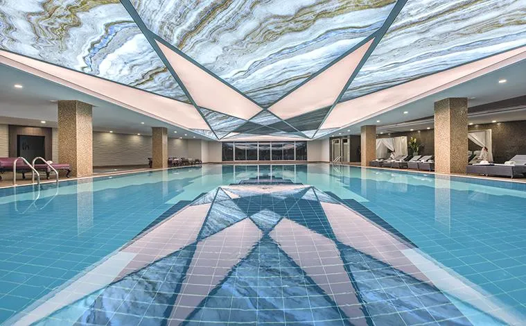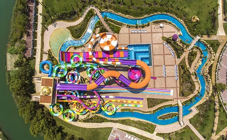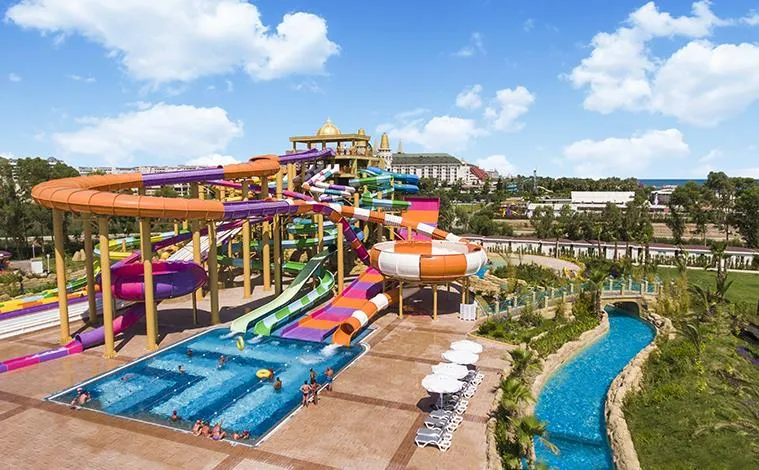 Plajă proprie, lungime – 200 m, ponton; Piscină semi olimpică – 868 mp, piscină Relax – 530 mp, Aqua Park cu 14 tobogane – 950 mp, piscină interioară – 62 mp, piscina Select Villa – 93 mp; Șezlonguri, saltele, umbrele și prosoape gratuite atât la plajă, cât și la piscină.