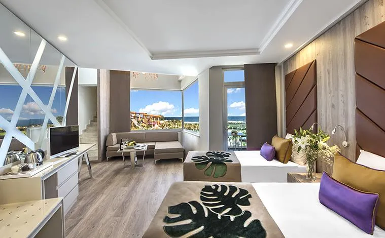 Club Turan Prince face parte din categoria hotelurilor de cinci stele și se întinde pe o suprafață de 132.000 mp. Hotelul beneficiază de camere elegante, spații de relaxare și facilități pentru întreaga familie. Copiii beneficiază de multiple facilități și activități concepute special pentru ei. Domeniul vast este dominat de grădini spațioase, iar plaja privată oferă o vedere spectaculoasă asupra mării.