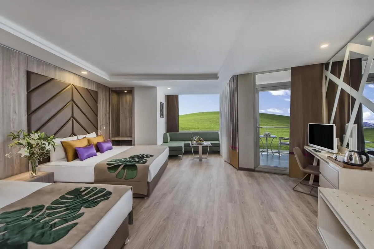 Descriere generală La doar câțiva pași de o plajă privată cu nisip se găsește hotelul Delphin Be Grand Resort. Pe plajă sunt disponibile gratuit șezlonguri și umbrele de soare. Orașul Antalya este la aprox. 10 km. Diverse magazine se află la aprox. 5 km de hotel. Hotelul dispune de serviciu de rentacar. De asemenea, aveți în apropiere o stație de autobuz și o stație de taxi (cca. 100 m) cea ce vă garantează mobilitatea în vacanță. Aeroportul (AYT) se află la aprox. 17 km. Un alt aeroport (GZP) este la cca. 0 m. Facilități Resortul dispune de 9 etaje și peste 853 camere repartizate între o clădire principală și de 3 clădiri secundare. Hotelul are recepție deschisă 24h (check-in de la 14:00, check out până la 12:00), lobby cu bar, un total de 26 lifturi, aer condiționat, minimarket, alte magazine, cinematograf, discotecă, parcare (gratuită) și birou de schimb valutar. Pentru a satisface apetitul vă stau la dispoziție 8 restaurante cu aer condiționat. Accesul la internet WiFi este disponibil gratuit pentru oaspeții hotelului. Pentru evenimente de afaceri, hotelul oferă o zonă de conferințe. Pentru oaspeții cu dizabilități fizice, unitatea de cazare oferă băi parțial accesibile pentru scaune cu rotile. Serviciul de menaj este gratuit. Room service, spălătorie, călcat și serviciul medical sunt disponibile la un cost suplimentar. Piscină În grădinile acestui hotelul există o piscină precum și o piscină pentru copii și un tobogan de apă. Acolo sunt disponibile gratuit șezlonguri și umbrele de soare. Un bar lângă piscină oferă oaspeților băuturi răcoritoare. Catering Mic dejun (între orele 07:00 - 10:00) bufet suedez. All Inclusive Plus: micul dejun, prânzul și cina. Micul dejun, prânzul și cina pot fi servite numai în anumite restaurante. În plus băuturi răcoritoare (08:00 - 00:00), cafea, ceai (08:00 - 00:00), aperitive (12:00 - 16:00), băuturi alcoolice naționale (08:00 - 00:00) și gustări la miezul nopții (00:00 - 02:00). Mic dejun târziu, apă, bere, vin și prăjituri și produse de patiserie. Băutură de bun venit, internet gratuit și minibar gratuit (limitat). Sport/Leisure Oferte pentru sport și divertisment: Tenis (gratuit), fotbal, biliard (contra cost), volei, fitness, darts (gratuit), aerobic și tenis de masă (gratuit). Pe plajă puteți practica sporturi nautice precum jet ski (unele de către furnizori locali). Oferte de wellness: Saună, baie turcească și hamam gratuite. Zonă de spa, jacuzzi și masaje contra cost. Divertisment pentru adulți: spectacole de seară și muzică live. Loc de joacă pentru copii. Îngrijirea copiilor: mini club pentru copii (de la 4 - 12 ani) și babysitting (contra cost). Sală de jocuri. Informații suplimentare Pentru anumite facilități sau activități se pot aplica taxe suplimentare. Unele servicii depind de anotimp și de condițiile climatice locale. Limbi de serviciu: engleză, germană, rusă și turcă. Carduri de credit: Euro/MasterCard și Visa. 2 Schlafzimmer Standard Familienzimmer (Meerseite): Dotate cu pat pentru bebeluși (gratuit), parchet laminat, încălzire controlată centralizat, ceainic (gratuit), minibar (posibil contra cost), acces la internet (gratuit), seif (gratuit) și TV cu ecran plat prin satelit precum și aer condiționat controlat central. Baie cu duș. Standard Zimmer (Meerseite): Cameră cu pat pentru bebeluși (gratuit), parchet laminat, încălzire controlată centralizat, ceainic (gratuit), minibar (posibil contra cost), balcon, acces la internet (gratuit), seif (gratuit) și TV cu ecran plat prin satelit precum și aer condiționat controlat central. Baie cu duș. Doppel Standard Zimmer: Cameră cu pat pentru bebeluși (gratuit), parchet laminat, încălzire controlată centralizat, ceainic (gratuit), minibar (posibil contra cost), balcon, acces la internet (gratuit), seif (gratuit) și TV cu ecran plat prin satelit precum și aer condiționat controlat central. Baie cu duș. Dimensiune: 35 m². Doppel Standard Zimmer (Meerblick): Cameră cu pat pentru bebeluși (gratuit), parchet laminat, încălzire controlată centralizat, ceainic (gratuit), minibar (posibil contra cost), balcon, acces la internet (gratuit), seif (gratuit) și TV cu ecran plat prin satelit precum și aer condiționat controlat central. Baie cu duș. Einzelbelegung Standard Zimmer: Dotate cu pat pentru bebeluși (gratuit), parchet laminat, încălzire controlată centralizat, ceainic (gratuit), minibar (posibil contra cost), balcon, acces la internet (gratuit), seif (gratuit) și TV cu ecran plat prin satelit precum și aer condiționat controlat central. Baie cu duș. Einzelbelegung Standard Zimmer (Meerseite): Cameră cu pat pentru bebeluși (gratuit), parchet laminat, încălzire controlată centralizat, ceainic (gratuit), minibar (posibil contra cost), balcon, acces la internet (gratuit), seif (gratuit) și TV cu ecran plat prin satelit precum și aer condiționat controlat central. Baie cu duș. Einzelbelegung Standard Zimmer (Meerblick): Dotate cu pat pentru bebeluși (gratuit), parchet laminat, încălzire controlată centralizat, ceainic (gratuit), minibar (posibil contra cost), balcon, acces la internet (gratuit), seif (gratuit) și TV cu ecran plat prin satelit precum și aer condiționat controlat central. Baie cu duș. Grosses Standard Zimmer: Cameră cu pat pentru bebeluși (gratuit), parchet laminat, încălzire controlată centralizat, ceainic (gratuit), minibar (posibil contra cost), balcon, acces la internet (gratuit), seif (gratuit) și TV cu ecran plat prin satelit precum și aer condiționat controlat central. Baie cu duș. Grosses Standard Zimmer (Seitlicher Meerblick): Dotate cu pat pentru bebeluși (gratuit), parchet laminat, încălzire controlată centralizat, ceainic (gratuit), minibar (posibil contra cost), balcon, acces la internet (gratuit), seif (gratuit) și TV cu ecran plat prin satelit precum și aer condițion