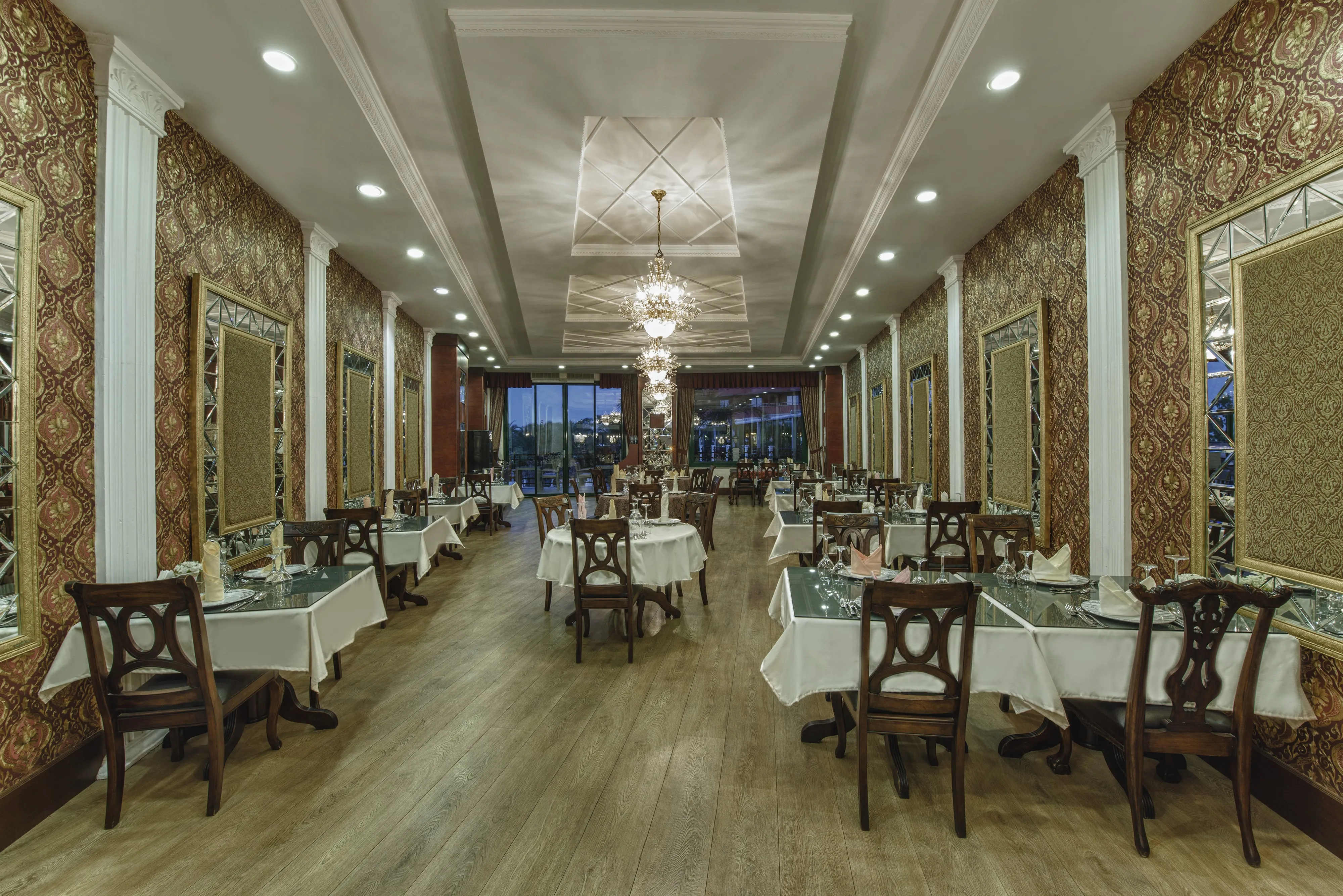 Location Delphin Palace offers with all its splendor amidst the palm trees in the place Lara the comfort of a palace. Lara is the new star in the tourism. From here, the distance to the center of Antalya is 15 km, to the airport 10 km and to the beach 0 m. Area 40.000 m2 Category 5 Stars Year of construction 2005The facility Our 8-story building is available with its 485 standard, 42 family rooms, 24 junior suites and 6 handicap-rooms. In the 24-hour open lobby floor where there are 5 panoramic elevators, you will find sitting area, dance floor and a piano bar, Avanti Cafe, Delphin Restaurant, a la carte restaurants and also shops. Furthermore you find on the the lower floor conference rooms for meetings or celebrations, spa, cinema, bowling, internet café. The disco is downstairs located. If you allow, you can spend your time in our indoor pool or bar. Location:557 Total number of rooms; 9 Number of floors (main building); 487 Double rooms; 24 Junior suites; 24 Suites; 6 Disability-friendly rooms Hotel type:hotel Methods of payment:EC; MasterCard; Visa; Maestro Distances (in meters):Beach (15); Golf course (30000) Facilities:Wheelchair-accessible; Car park; 24-hour reception; Check-in hour; Check-out hour; Late Check-out (Extra Fee); Mobile phone coverage; Wi-fi; Room service; Laundry service; Medical service; Bicycle hire service; 24-hour security; Bellboy service; Air conditioning in public areas; Hotel safe; Currency exchange facilities; Lift access; Newspaper stand; Supermarket; Shop; Garden; Terrace; Sun terrace; Gym; Newspapers; Luggage room; Private beach area; Electric kettle Catering:Café; Bar; Restaurant; Non-smoking area; Smoking area; Highchairs; Poolside snack bar; Banquet hall; Show cooking; Air conditioning in Restaurant; Breakfast room Business:Conference room; Meeting room Entertainment:1 Outdoor freshwater pool; Sun loungers; Parasols; WaterSlides; Children playground; Kids’ club; Entertainment programme for adults; Theatre / auditorium; Game room; Nightclub Health:Sauna; Steam bath; Hot tub; Turkish bath (hamam); Massage; Spa treatments; Hairdressing salon; Beauty salon; Spa centre