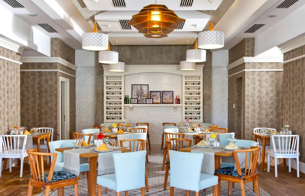 Restaurant principal, Buffet Resturant, Bistro Tulip, restaurant á la carte; Beach Bar, Pool Bar, Patisserie Class Lobby Bar, Service Bar, Bistro Tulip Bar, Grande Lobby Bar, Hollyhock Pub