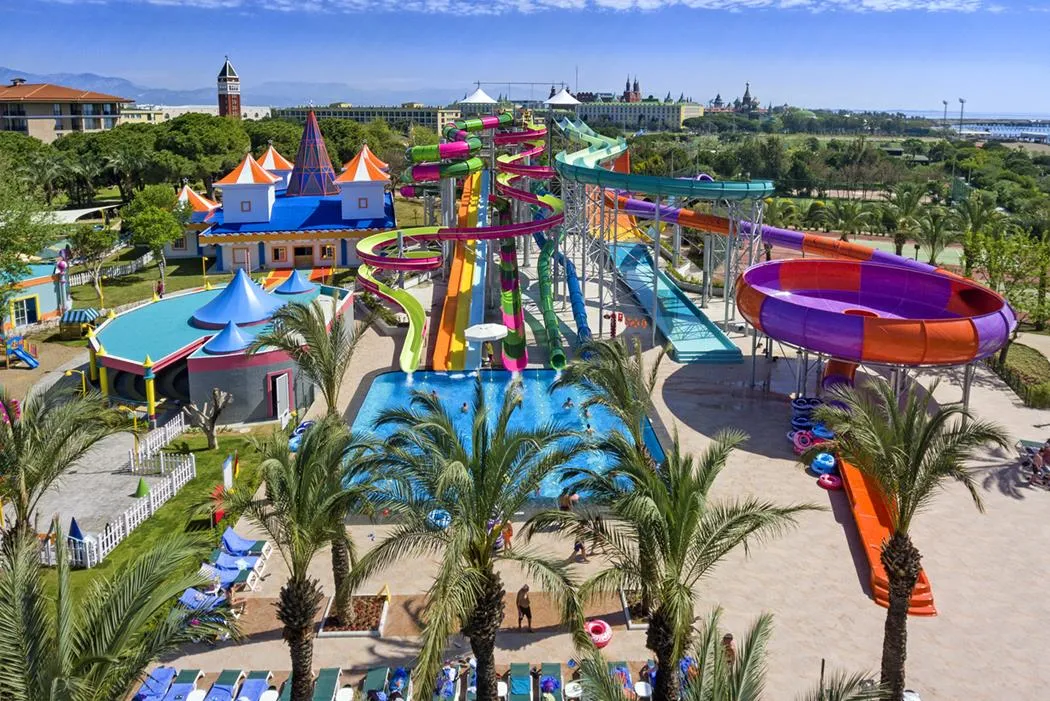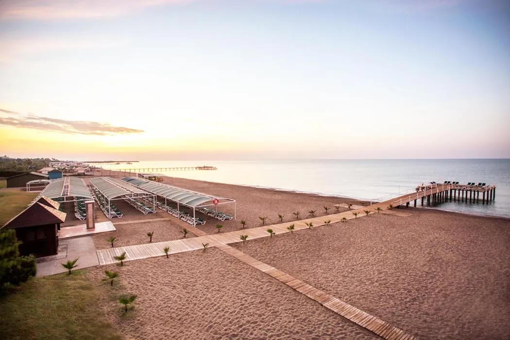 Hotelul detine o plaja privata cu o lungime de 200 m, 4 piscine in aer liber pentru adulti cu adancime de 140 cm, 3 piscine in aer liber pentru copii cu adancimi de 30 si 40 cm, 2 piscine indoor (incalzite pana la 1 Mai) si un Aquapark. Sezlongurile, umbrelutele si prosoapele sunt gratuite atat la piscina cat si la plaja.