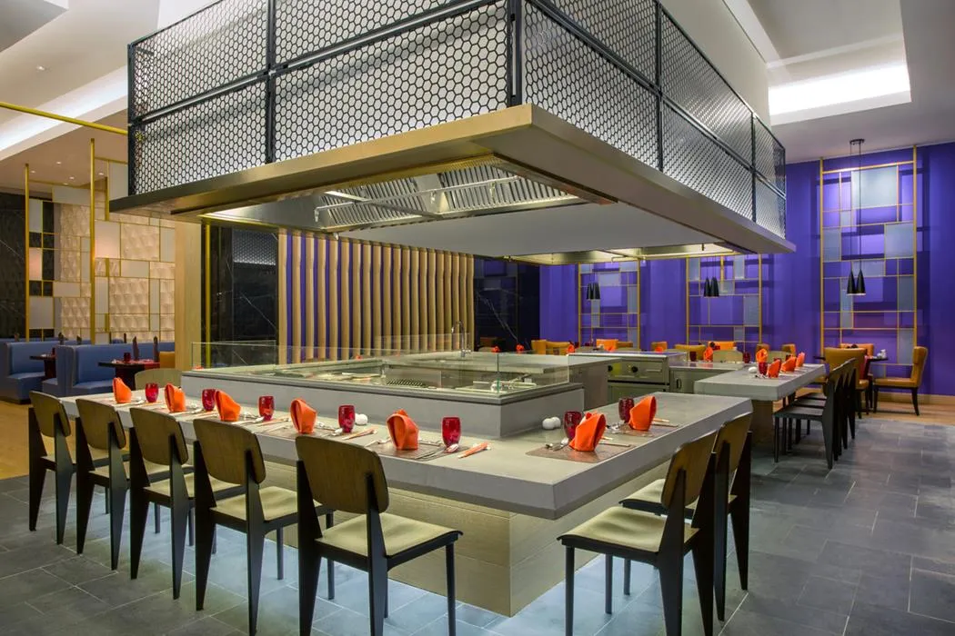 Restaurant principal cu bufet pentru copii, Restaurante snack, 5 restaurante a la carte cu specific italian, mexican, Steak, pescaresc si asiatic (contra cost), 9 baruri si cafenele.