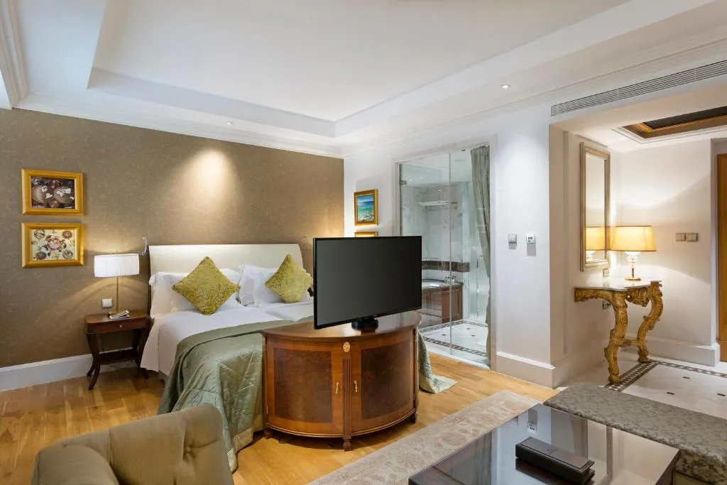 Dotări camere: baie cu cadă / duș, halate și papuci de baie, produse cosmetice de baie Bvlgari, oglindă de make-up, uscător de păr, cântar, aer condiționat, acces internet Wi-Fi, telefon, TV, seif, mini-bar, facilități pentru ceai/ cafea, balcon / terasă.