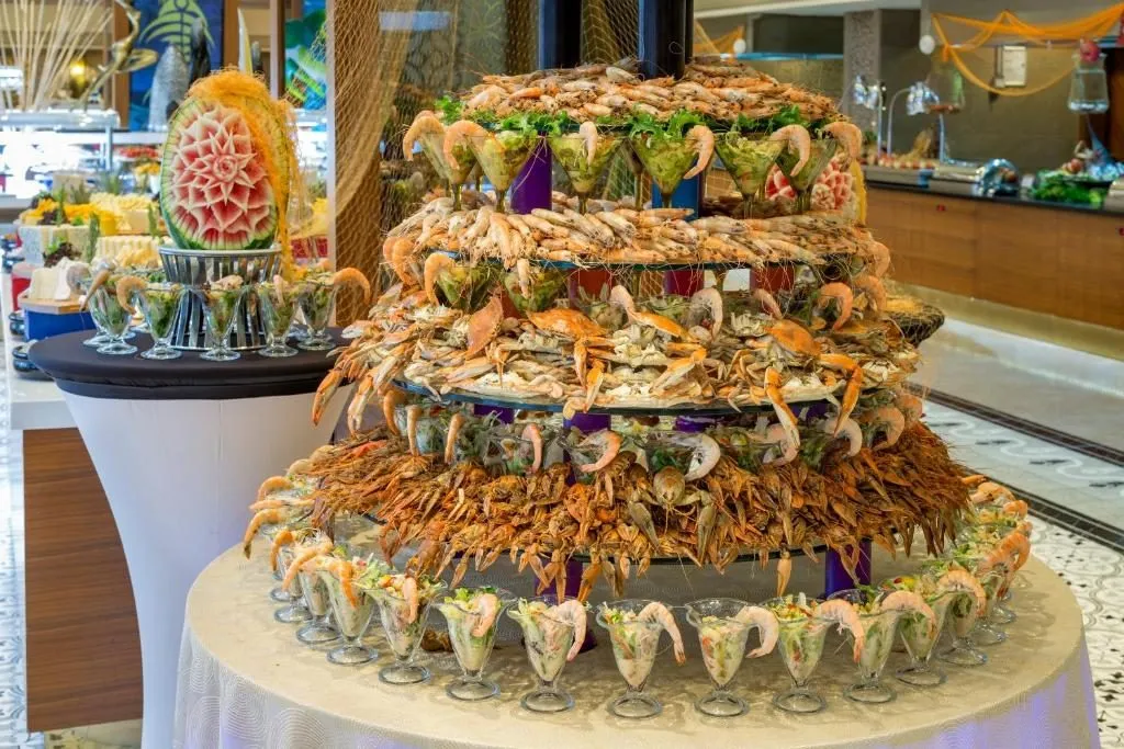 Restaurant principal-“Palace; restaurant pentru copii-“Bambino Kids Restaurant”; 5 restaurante á la carte, cu specific: italian-“Vapiano”, oriental-“Hashi”, grill-“Lal”, pescăresc-“Deep Blue”, mexican-“El Torito”;“Turquoise Snack-Restaurant”,“Palace Bistro & Patisserie”; Food Corner; “Pera” Lobby Bar, “Piano” Lobby Bar, Pool Bar, Pier Bar, Terrace Bar, Amphi Bar, “Oxygen” Disco Bar, Bowling Bar, Café Turk
